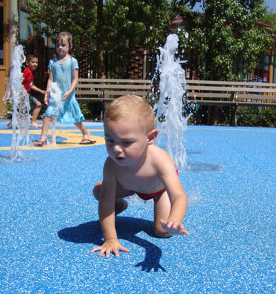 Last time I was at Town Square I noticed a new water feature in the playground. I took Brandt to check it out today and he was a bit scared, but stuck it out for a while. We mostly played in the shady areas of the playground and I’m very proud of myself of lasting over an hour outdoors. That’s outdoors, over an hour, in Vegas, in July. Wow!