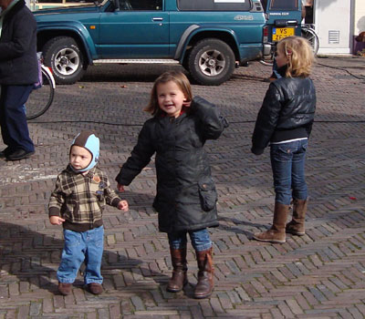 We did some eating and shopping and despite drizzling for our ride to town, the weather was beautiful (beautiful=sunny, but still very cold). We first stopped for a drink in Grand Cafe Brinkmann and Brandt played with a little dutch brother and sister until we were told to keep our kids off the floor. Brandt’s become quite the little lover and repeatedly hugged the little girl. He hugs properly, around the shoulders now…last week he was hugging his friends around the neck, so maybe more like choking. I (and the recipients) like this method better. Brandt took a nap soon after (chasing and hugging is tiring work) so he missed out on his first uitsmeiter, but once he woke up we found a herring booth. He wouldn’t eat the haring, but he did like stabbing the pieces with a toothpick, dipping in uitjes, and feeding to me. We’ll try again tomorrow.