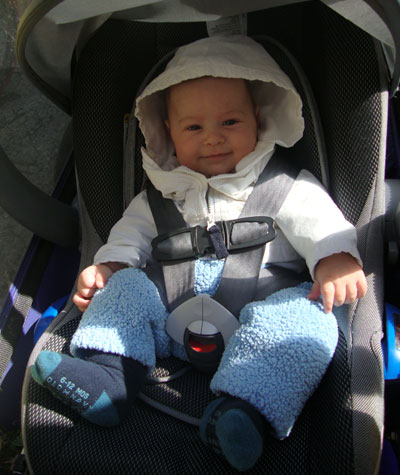 For the record, my only reason for biking was because I got a parking ticket at Revolutions Coffee last week (I tried to buy a parking sticker, but the stupid machine wasn’t cooperating). Of course it rained cats and dogs on us (ooh, I’ll have to teach Brandt that term–he’ll love it!). It wasn’t awful. The bike has fenders and the rain shield kept Baby Rijder dry, but I don’t think I’ll make a point of riding in the rain. I guess I’ll know I’ve become a true Seattlite when that changes.
