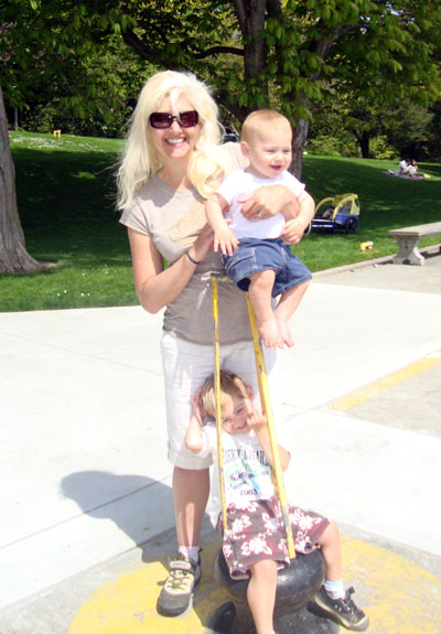 After we walking the entire street fair, we continued downhill to Gasworks Park to watch boats and sea planes. Dan was able to take a break from weekend work and join us for a bit, too. After biking back up Stone (nonstop–yay!), I was too tired to ride one more block uphill to get to the house, so Dan headed home and the boys and I went six more flat blocks to the Green Lake playground.