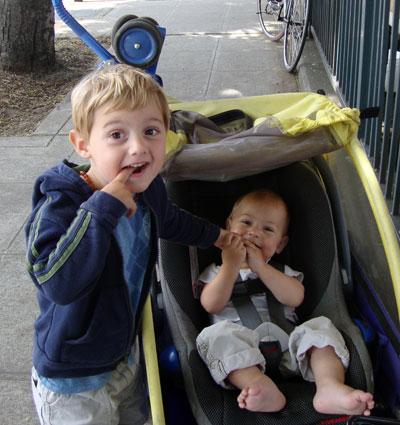 We rounded out our big day at Golden Gardens beach. I almost had a chance to take a leisurely nap on the shady grass, but I made the mistake of announcing “Baby Rijder is asleep in the Burley” within Brandt’s hearing so he promptly shook his baby brother awake. It’s hard to be too upset when Brandt looks so surprised and excited as he says, “Hey, Baby Rijder woke up!” We met a 10-month-old baby boy who had just started walking. I tried to keep Baby Rijder from watching him, but I think he saw what was going on. The dad admitted he tried to prevent the baby from walking by pushing him down. That’s not the first time I’ve heard that one.