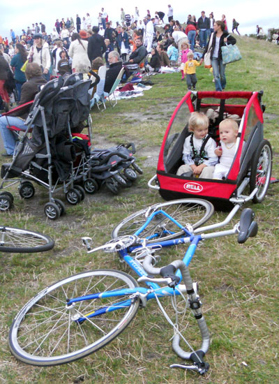 The boys and I rode down to Gasworks Park for Lullaby Moon this evening. I forgot that “arriving early” for something in this city means an hour early, not just 20 minutes early. So by the time we go there, the place was packed. The entire face of kite hill was carpeted in people so we didn’t get the best spot, but it allowed for more running around room. Thank goodness we biked because Dan tried to meet us on his way home from work and couldn’t find parking anywhere nearby and had to give up.