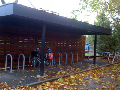 There was a covered bike rack set up at Ballard Commons Park, but I’m not sure if it was just there for the festival or if it will be there always. I did discover a couple sneaky spots under the overhang at Joanne’s Fabrics, but it wouldn’t be cool of me to steal one and then hang out in the library or Tully’s.