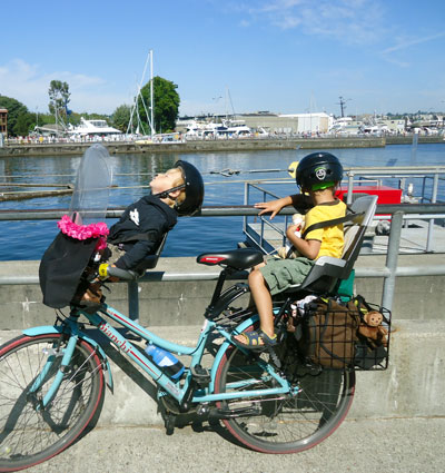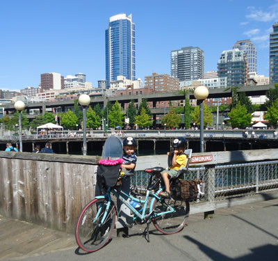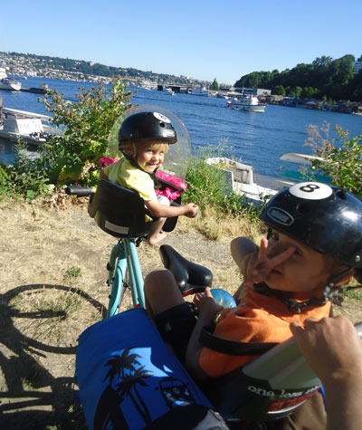 Other than the alarming no-hands dad on the way home, it was a great day. I tend to avoid the touristy spots on weekends so today was a bit out of the norm. We got a lot more comments about the bike seats and the one less minivan sticker than normal–all positive. Rock on, Seattle.