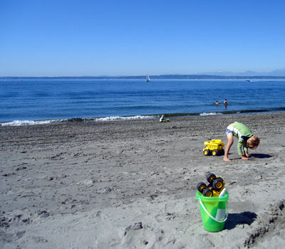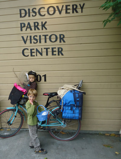 We left the house at 9:30 this morning and didn’t return until 7:15. In those nearly 10 hours we biked 25.4 miles…though we hadn’t set out with such a big day in mind. I blame the high mileage on the quality of kindie rock we Seattle-dwellers have become accustomed to hearing. The highlight of our day was supposed to be a free kiddie concert at Waterfront Park, but the first guy was pretty sucky and the second act covered three Disney princess songs before we just couldn’t take it anymore.