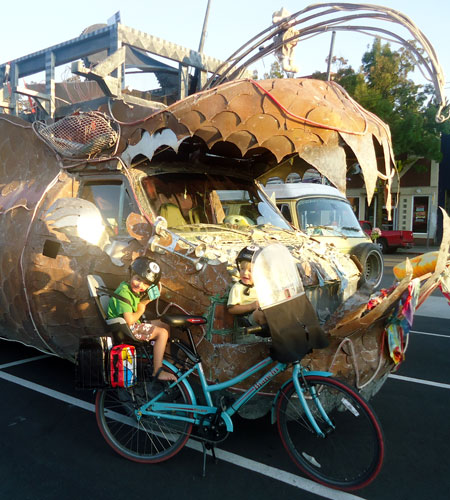 I got a couple impressed looks and comments on my way to the festival and felt the need to point out that the trailer didn’t contain kids number three and four, but simply tiny bikes. Not to belittle my accomplishment, but five people on/behind one bike is more of a feat than one person moving two people and three bikes.