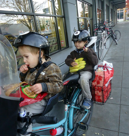 Another bonus of the front row Joe parking spot was that I got to talk family bikes with a couple moms waiting for the second show. However, had we not spent so long layering up in the lobby to prepare for the wet ride home, we would have been outside in time for Biz Markie to walk by us. Darn! As it is was, we merely saw him through the door as we were shoving our feet into boots and hands into gloves.