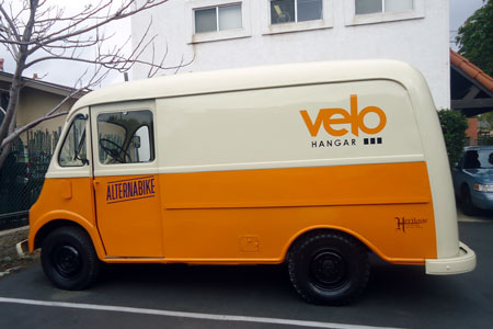 The kids and I are visiting family in Los Angeles for nine days and took a break from La La Land to ride the four-year-old’s favorite train–the Amtrak Surfliner–to Solana Beach for a visit to Alternabike and Velo Hangar. I rented the Alternabike Gazelle Cabby in San Diego almost a year ago, but that was before they had a physical shop to visit. Yippee!