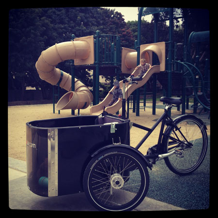 But back to today! Gina and her friends hadn’t been to Alternabike/Velo Hangar before so I was happy to introduce them to a new local (local if you ride hundreds of miles a week, anyway) shop. They couldn’t stay long, but I borrowed the Nihola and we rode a couple blocks together to a playground so the boys could get some play structure and sand time in before we had to head back to the train station.