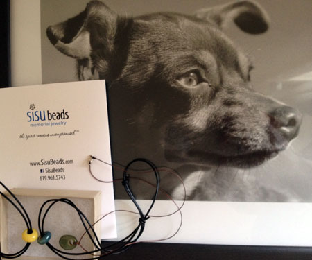 When I met Gina she was a downhill mountain bike racer (something I’ll probably never try–too scary!), but did some cross country (regular) mountain biking on the side and led a ladies’ ride I went on (and slowed down) a few times. Then she went through a track racing phase, at which she kicked butt, and now I think she just bikes a million miles a week on the road. Oh, and she started a memorial bead business with a fellow cyclist. I have to admit I didn’t put a lot of thought into Gina’s beads when she first told me about them, but when my sweet little doggie passed away six months ago, I realized it was the greatest thing ever. So now Lyle, my very first bike passenger 18 years ago, is three Sisu Beads.