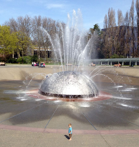 This picture of the fountain is misleading–there were tons of kids there. I didn’t think the day was quite warm enough for getting doused by the musical fountain, but soon we’ll have to travel everywhere with swim suits and towels.