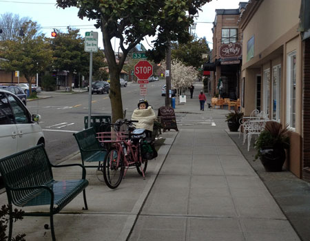 Nine bike miles and 35 bus miles got us to the doctor here in Seattle and to the dentist over in Issaquah. Our doctor is only a mile away so the day started out easy enough (although mostly uphill, of course). While stopped for a red light at 40th and Wallingford, cursing the busy half-mile hill we’d just faced, the grocer at Durn Good Grocery came out and mentioned he’s our neighbor. Really? This is how hard it is to meet one’s neighbors in this city! We’ll be back…and time our visit to see the resident grocery dog as well.