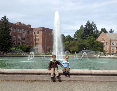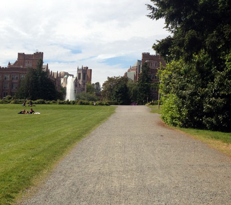 As we rounded the last curve, I saw a helicopter looming over Roosevelt so I opted not to go directly home. A friend texted me about today’s shootings while we were at Kaffeeklatsch so I followed the news at our various stops, but so far hadn’t read of a resolution. I’ve always meant to bike the two gravel paths from the Burke-Gilman Trail to Drumheller Fountain so that’s just what we did.