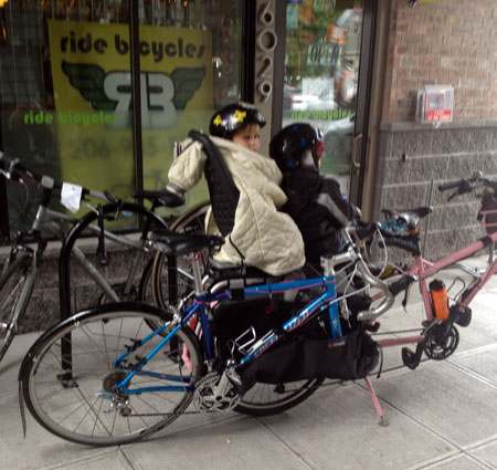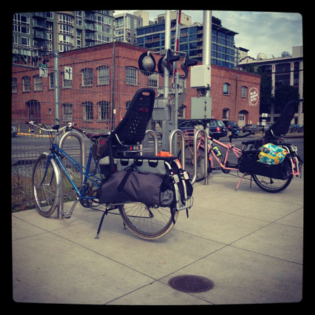 As expected, I woke to a fully flat rear tire on the Big Dummy. No problem, I just did the preschool run with the old mamabike. Yay for having a backup vehicle or two (road bike and double trailer) or three (car). Monday is not the best day to have a flat tire as many bike shops are closed, but we had beach plans in the afternoon and I’ve become spoiled by all my cargo room and really wanted to have things remedied by 12:30. The flat was a blessing in disguise: I’ve been meaning to meet Henry of LionTail Cycles and now I had a reason. He built my friend’s Xtracycle and sounds like an awesome guy:
