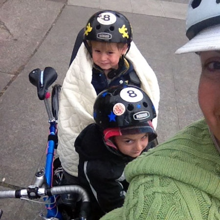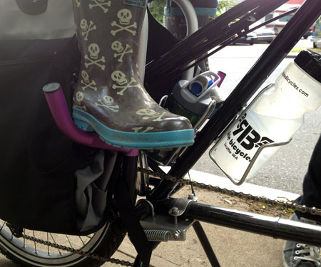 Henry is as cool as he sounds in pixels. He’s passionate about cargo bikes and electric assist and was happy to fix my flat while we balance biked around the block and tromped through his garden. Last night Mr. Family Ride found the piece of glass that caused my flat and in examining my tire, Henry found another just waiting to puncture me again. Yes, that’s on my list of things to start doing: regularly check tires for embedded pieces of glass. The tire itself was fine, thank goodness.