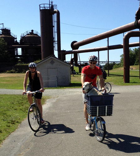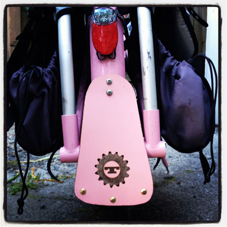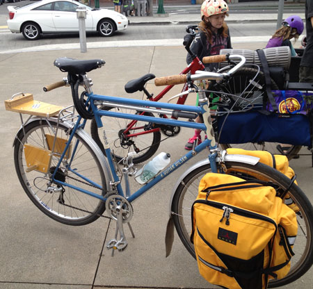was in town and accompanied us to the ferry. He’d left his Surly Big Dummy at home for his more Amtrak-friendly and GORGEOUS Rivendell A. Homer Hilsen, with homegrown kid platform on the back rack.