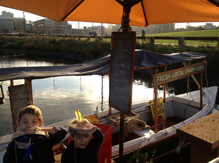 The Holiday Lights Festival was great. We sailed model boats in the pond, decorated boat-shaped cookies in The Center for Wooden Boats, made our own wooden boats, boat fruit from the Farm Boat, and made cards and necklaces aboard the Virginia V.