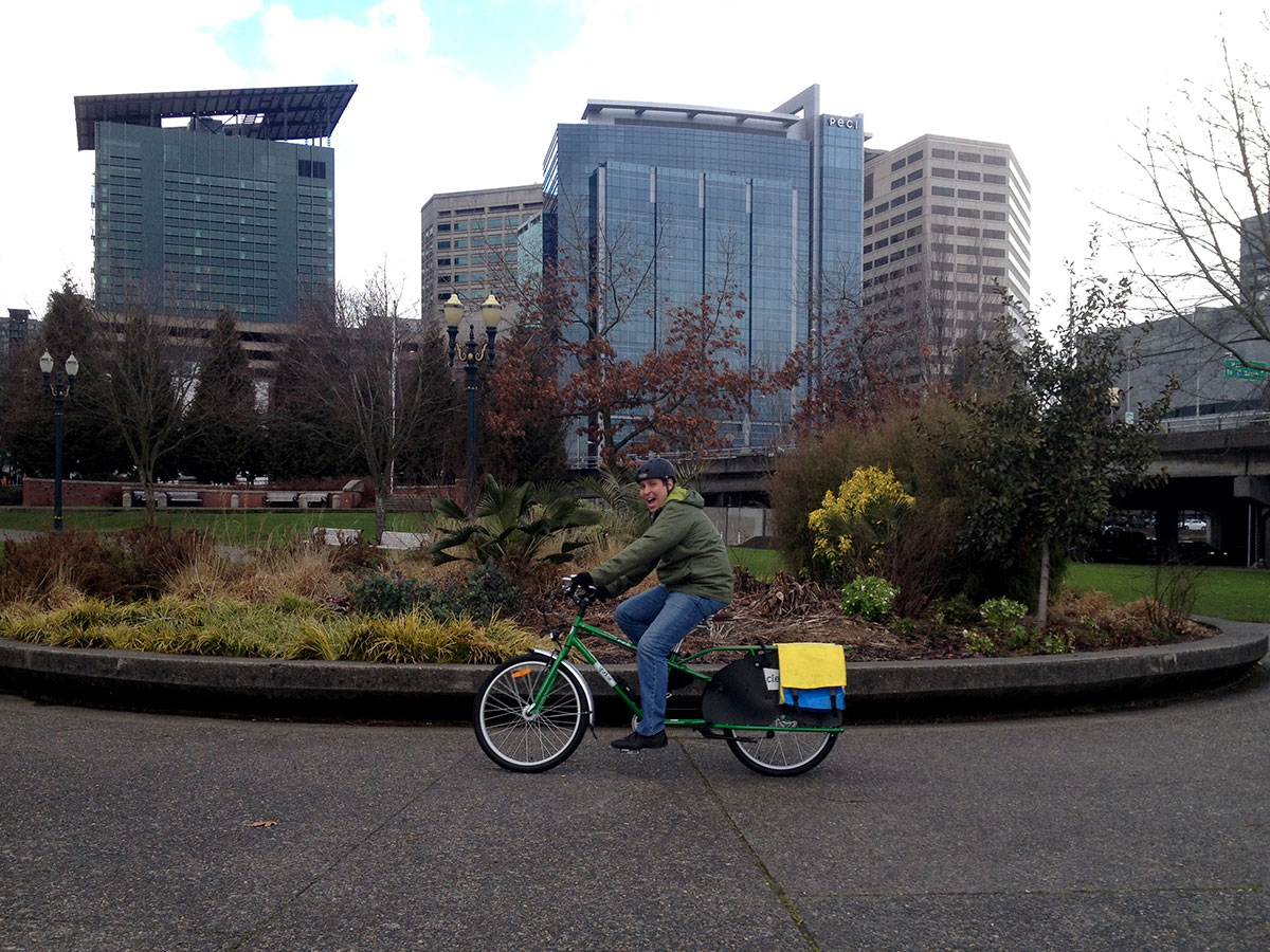 Davey rode a Bullitt with a Brompton inside and Donald of Bike Works hauled a Brompton and his own bike with an Xtracycle EdgeRunner. So I won, I’d say. Though in all fairness, Davey and Donald may not have known it was a competition.