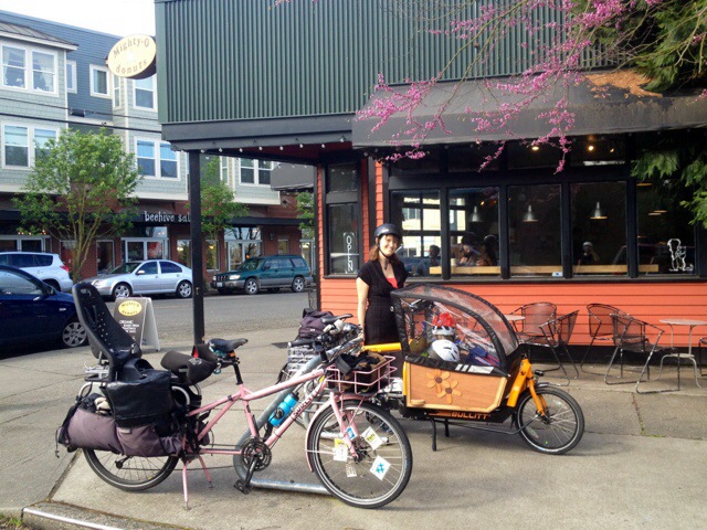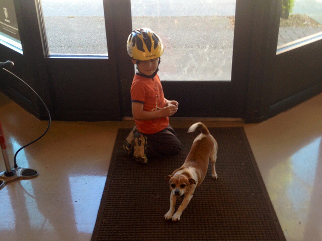 The bikes came in handy after our dentist appointments (which we were 30 minutes late for which meant my cleaning got put on hold…I guess that’s nothing to complain about!) for riding a mile to dinner, with a pit stop at Bicycle Center of Issaquah to see Dillon the dog.