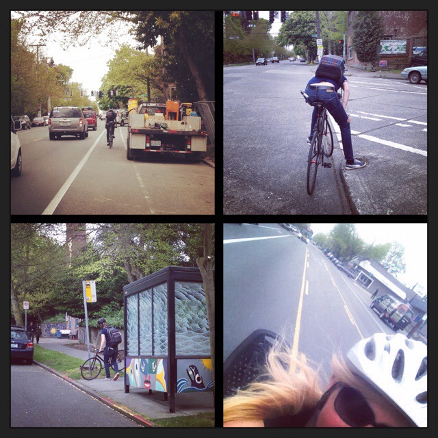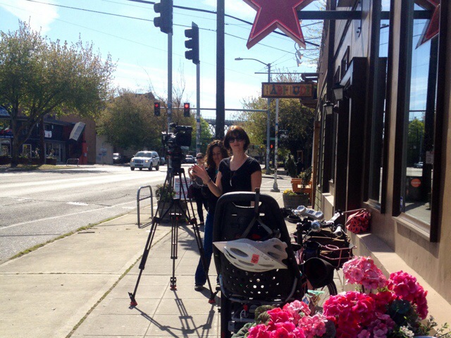 With the kids away at school and time to myself, I headed over to Hub and Bespoke to be part of a TV shoot for Seattle Channel about being fashionable while biking. Ha ha, I know, me?! I didn’t realize that was the subject, obviously. Thank goodness I had changed out of those flip flops from the top picture. They said I did fine. (I’ll believe that when I see it!)