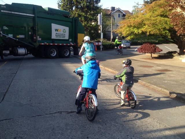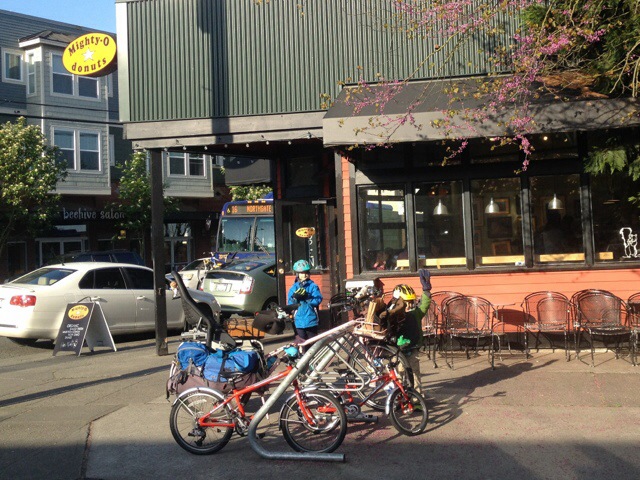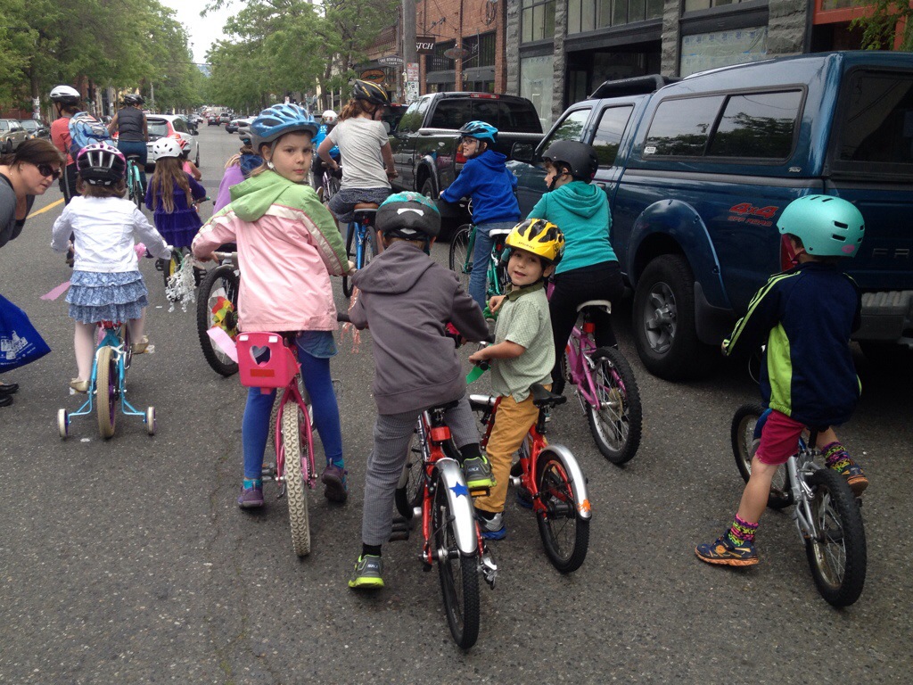 But enough about fashion, back to the street party! At 5:45 we joined the kids’ bike parade down most of Ballard Avenue: