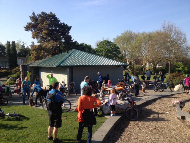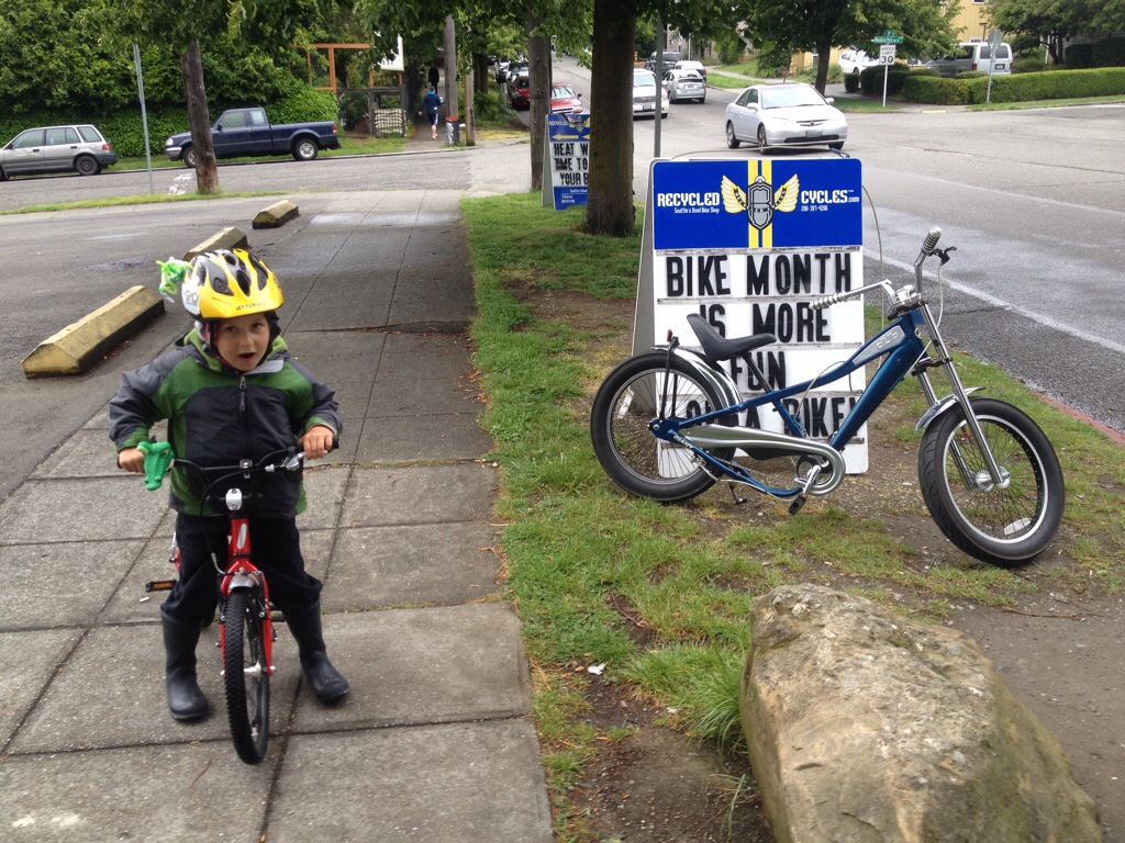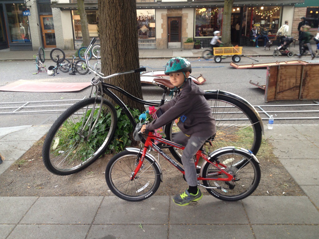 Yesterday afternoon was one of my favorite events of Bike Month, Cascade Bicycle Club’s Ballard Bike Street Party. We headed over after school, the kids riding their own bikes through the Missing Link of the Burke-Gilman Trail. I’m not sure I’ll make that common practice without an extra adult, but things were calm enough at 4pm-ish this particular Thursday.