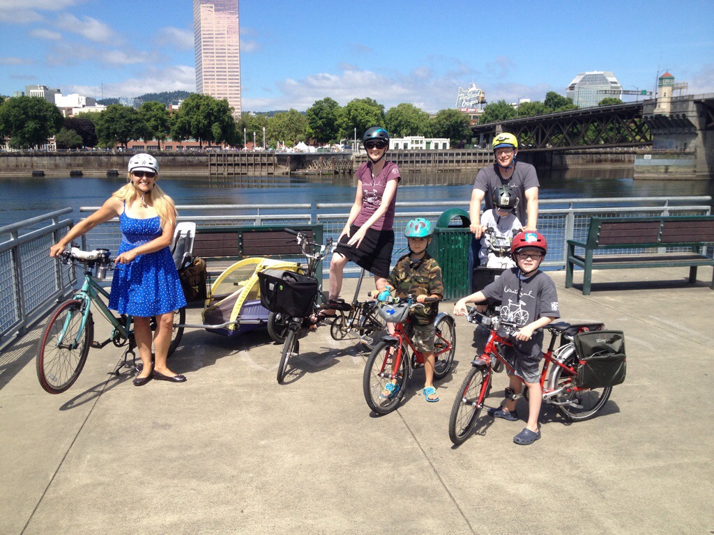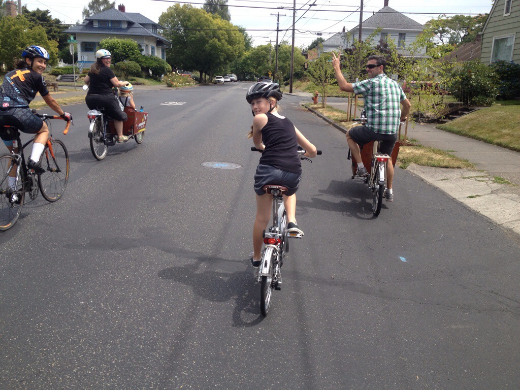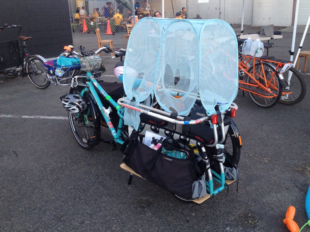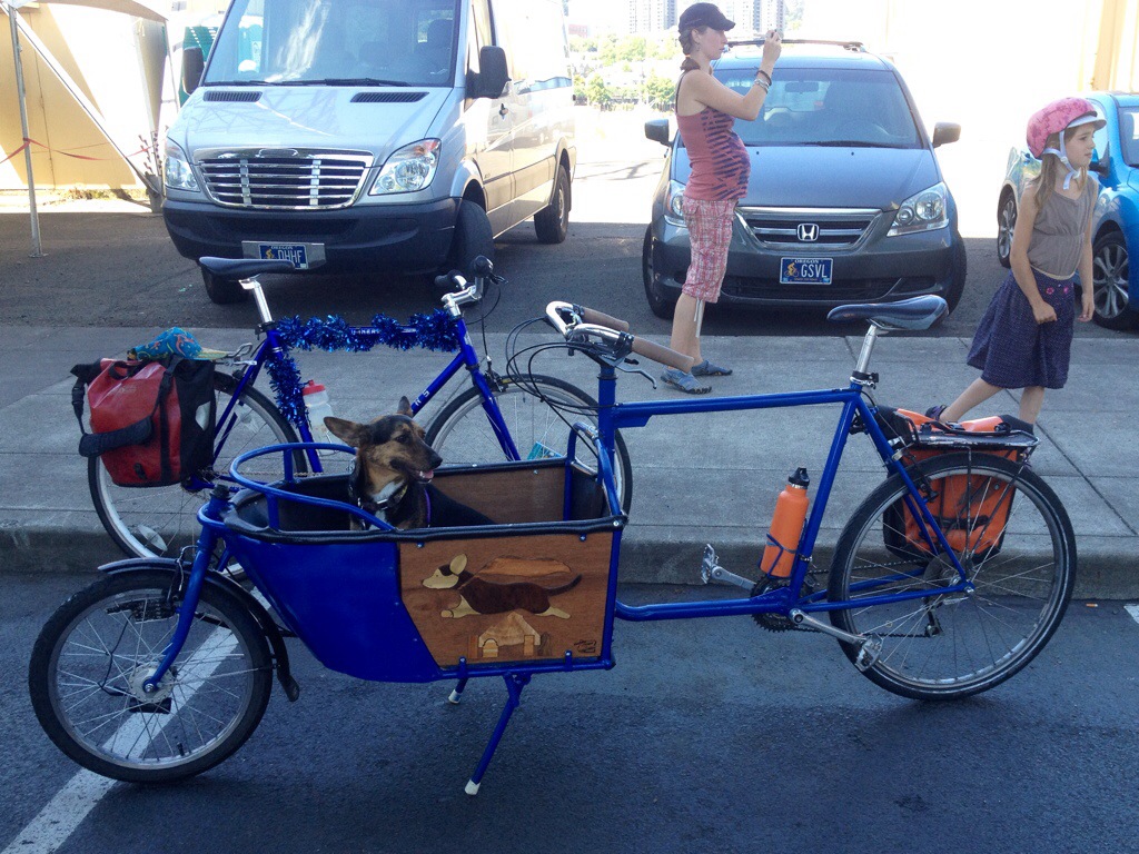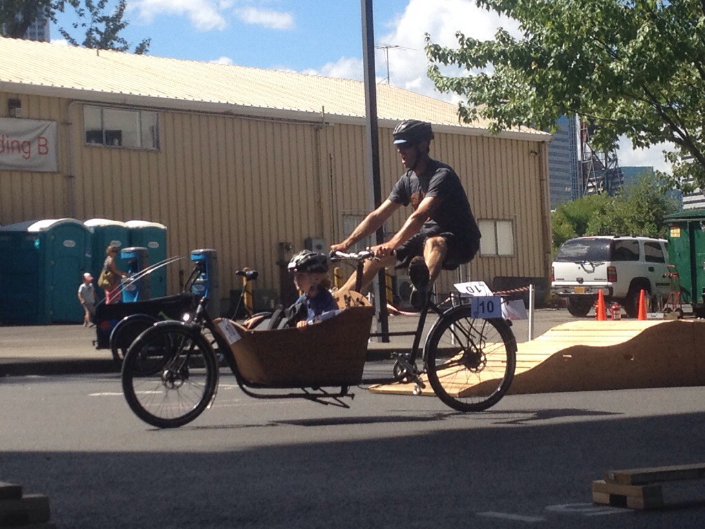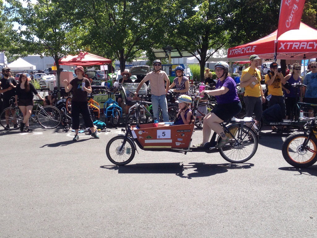 Two years ago we took Amtrak Cascades to Portland with the old mamabike for Fiets of Parenthood, last year we BoltBused with the Big Dummy, and this year we drove the car with the old mamabike, trailer, and kid bikes. More bikes, less green.