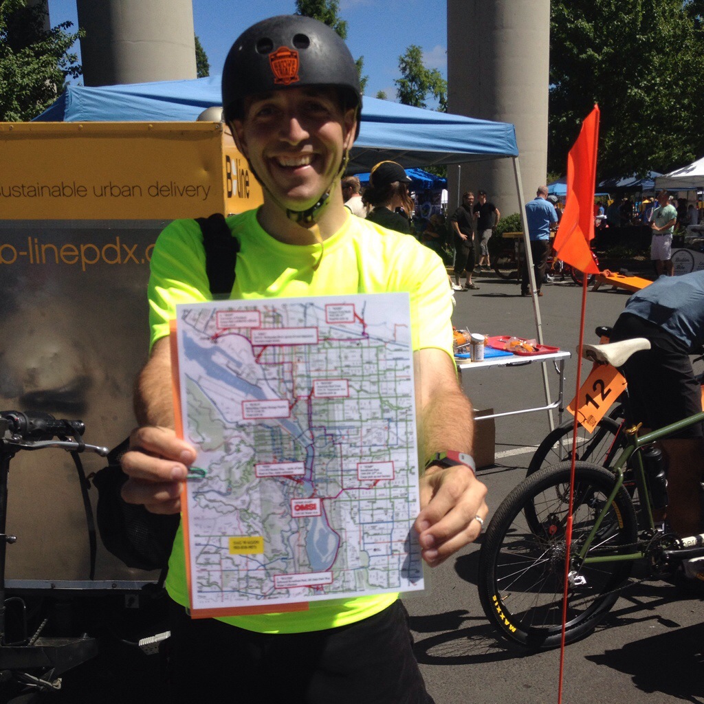 Longboard skateboarder (with cargo trailer) Cory Poole showed me his map and said the course looked tough: