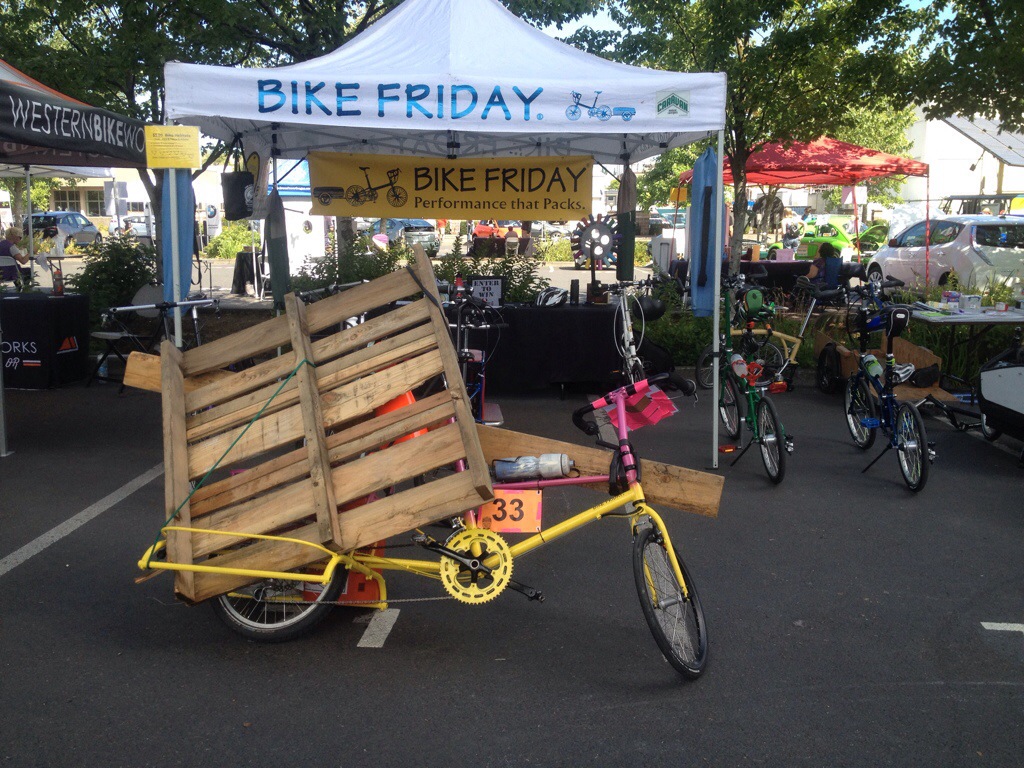 And the Open Class winning bike was a custom Bike Friday longtail. Or maybe it’s a midtail. It’s similar to the amazing Haul-a-Day midtail, newly available to the public.