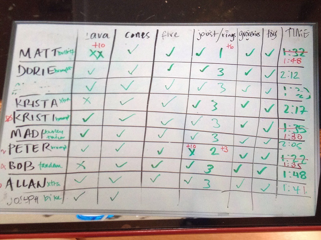 I didn’t note the kid results, but here are the Parent Fiets times. Two minutes and five seconds of the most fun ever!