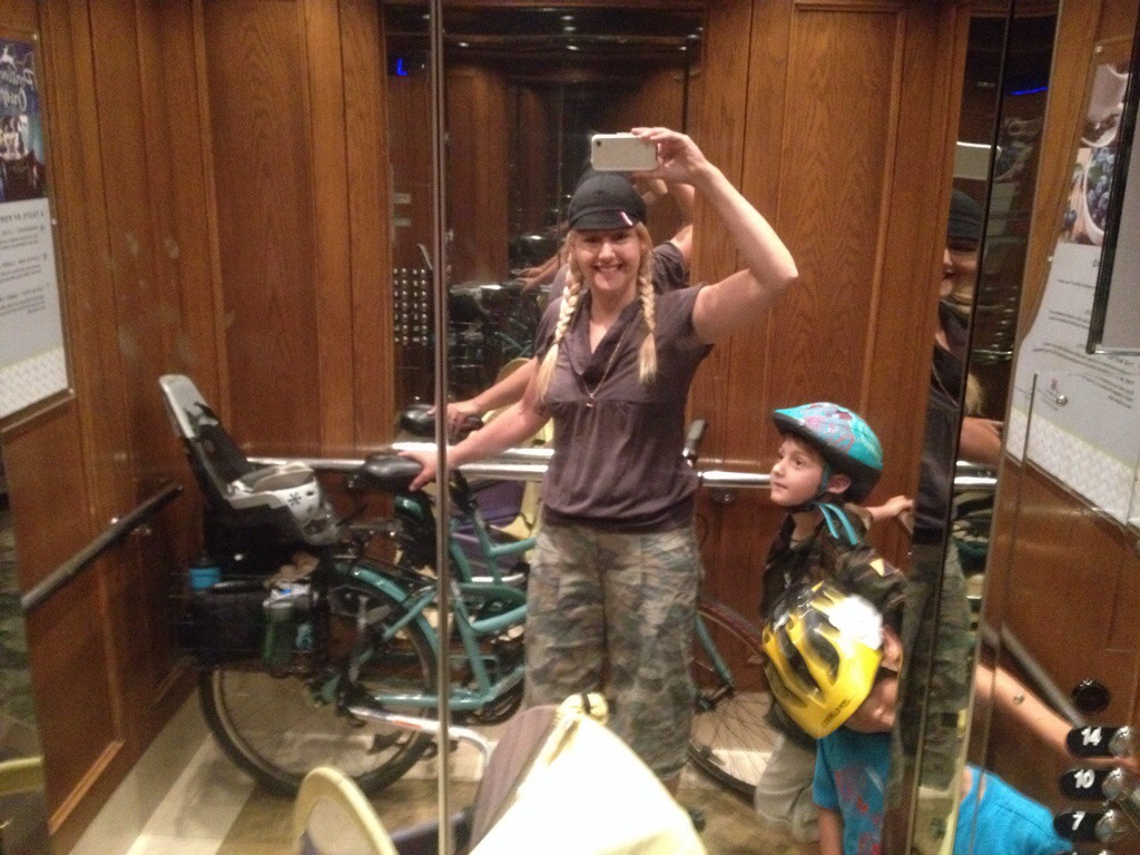 It was nice being able to fit all our bikes in the elevator and hotel room; I have to valet the Big Dummy. I got pretty adept at squishing the bike/trailer into the elevator just so. It was a tight squeeze, but not tight enough that other hotel guests didn’t squish in with us most rides. I guess that’s a sign we don’t look scary.
