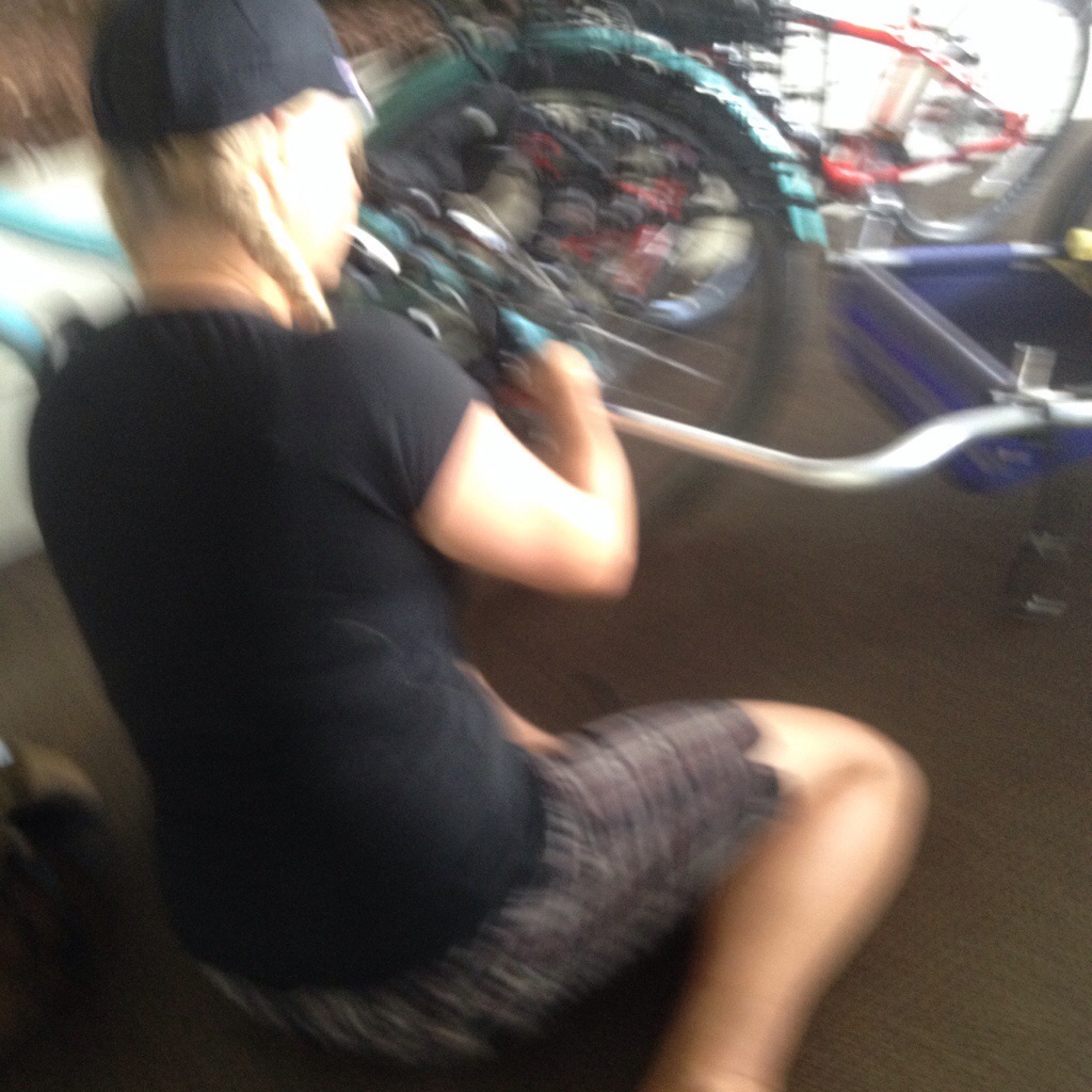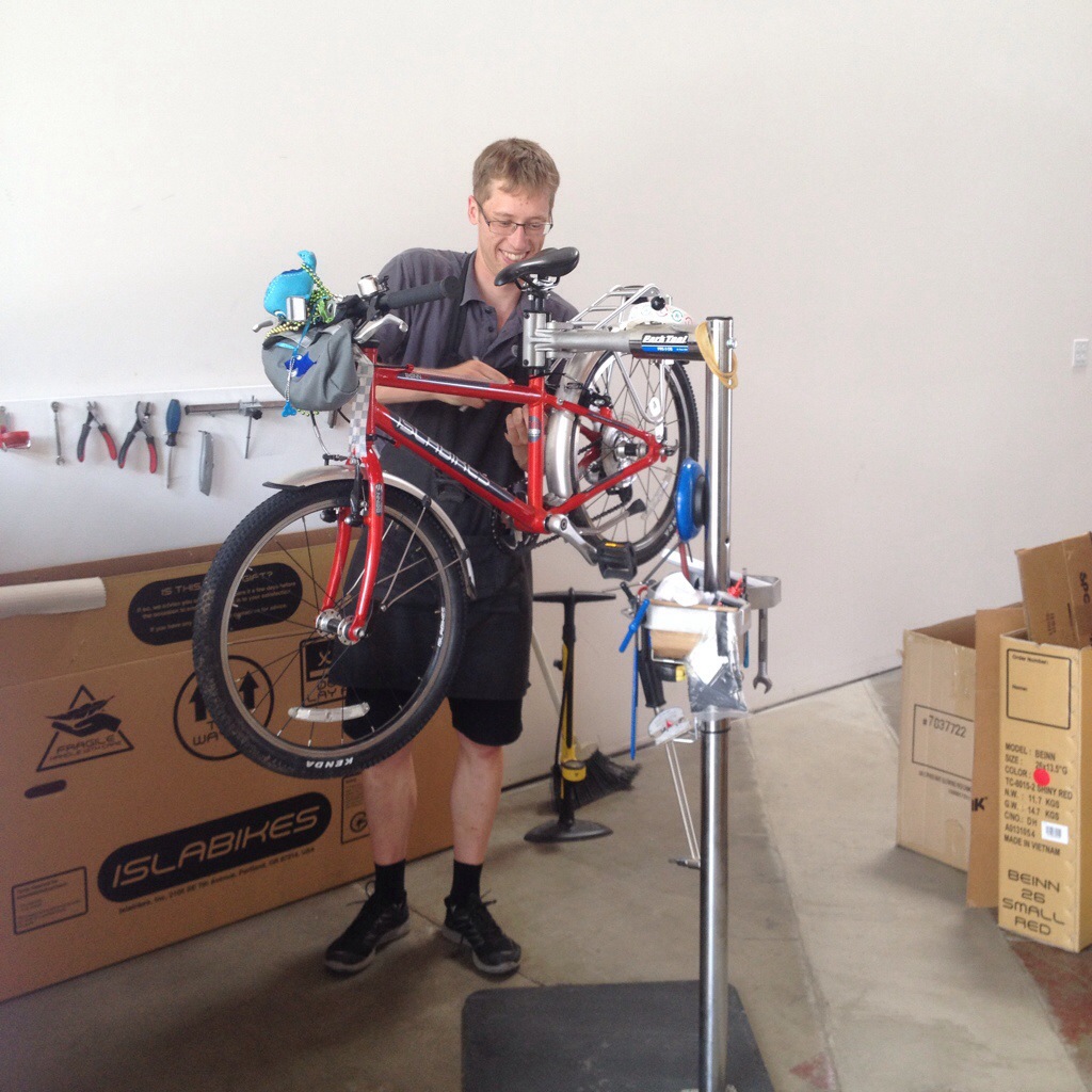 I still can’t believe I figured out the trailer breakdown and putting-back-together. The kids took a picture of my allen-key-and-wrench technique for disengaging the trailer from the bike. I’d like to get one of those easy pins for it, but I don’t know if we use it often enough to warrant it.