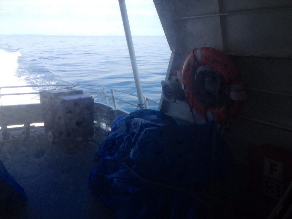 Regular checked baggage travels in big metal boxes, placed on the boat by crane.