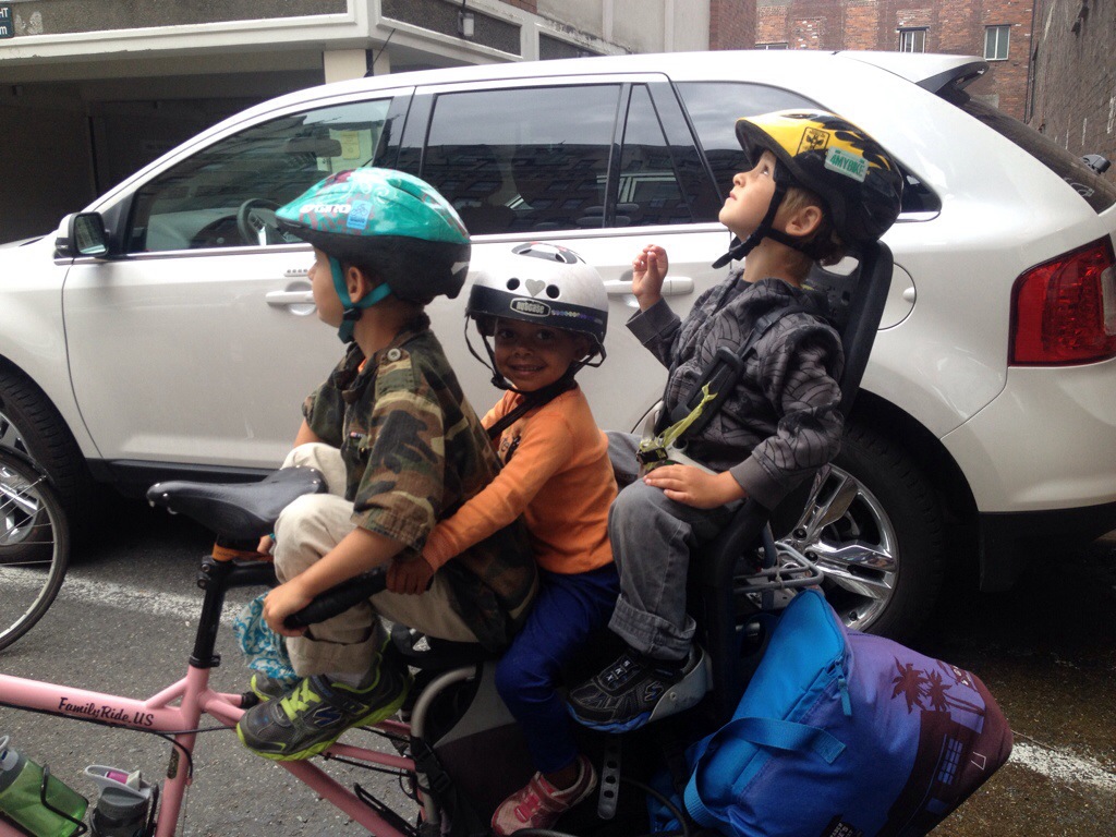 Then we found Eunice at the playground and I finally got to see her Xtracycle in person! And, of course, more kid swapping: