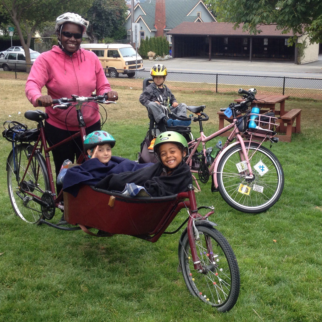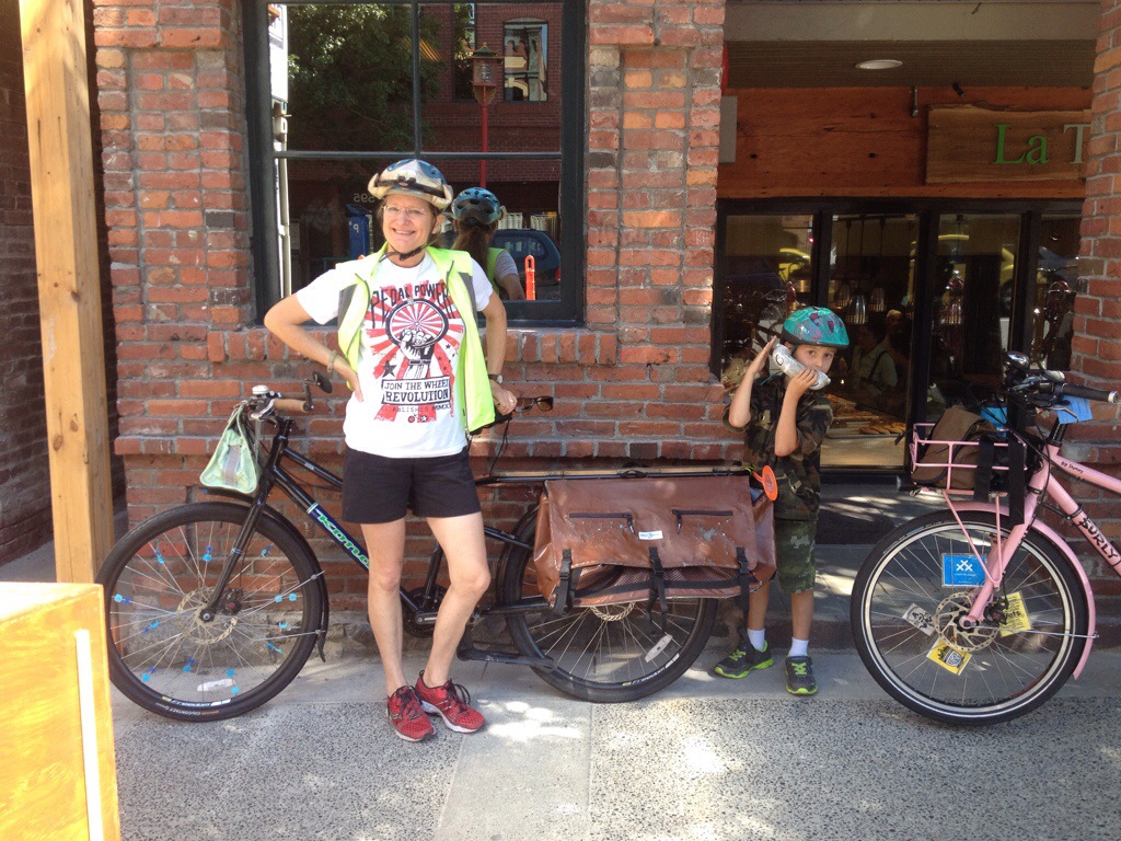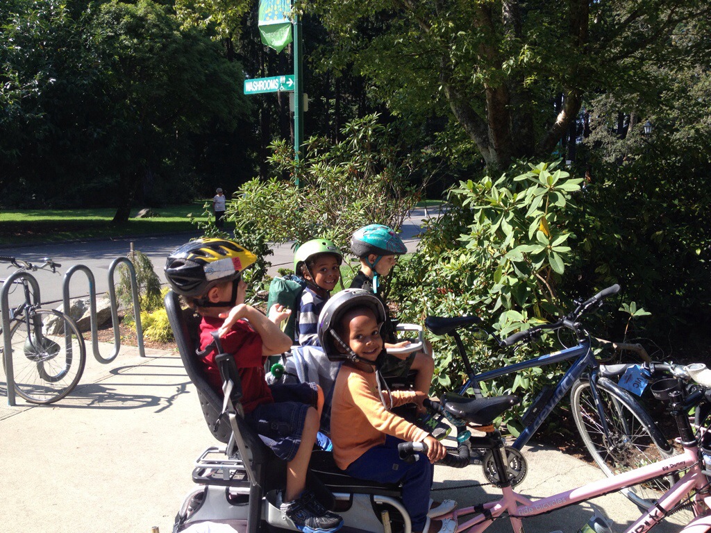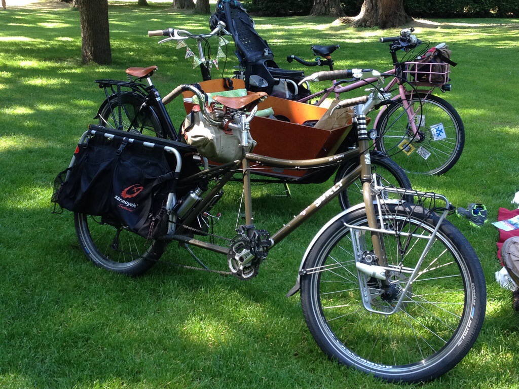 On our first full day we met up with the Growing Up Bike family. Eunice wasn’t on her own Xtracycle, but instead borrowing her friend’s Tom’s Cargo Bikes longjohn. I know this bike! It was Fred King’s bike at last year’s Portland DRT. He’s since upgraded to a Bullitt and his old bike has a new happy family.