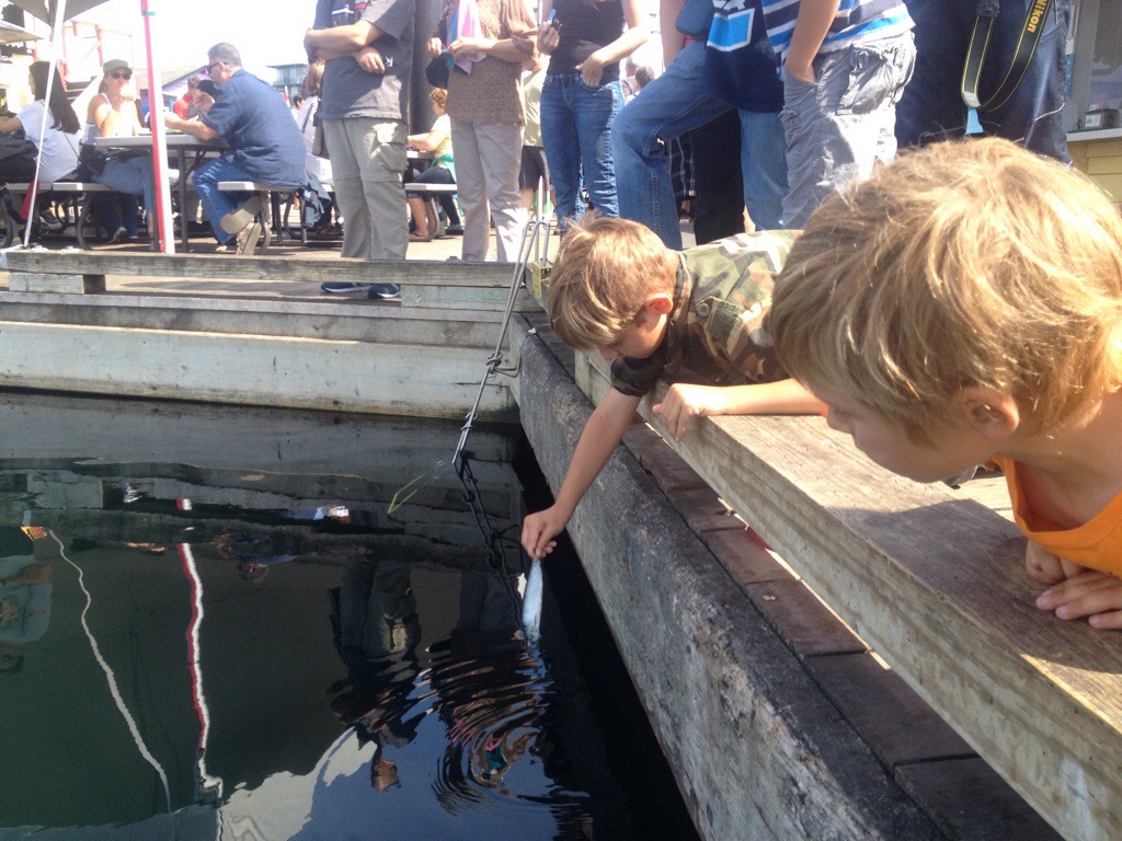 Our destination the following day also qualified as within walking distance: Fisherman’s Wharf, where we found a playground, many food options, and hungry seals we could feed by hand.