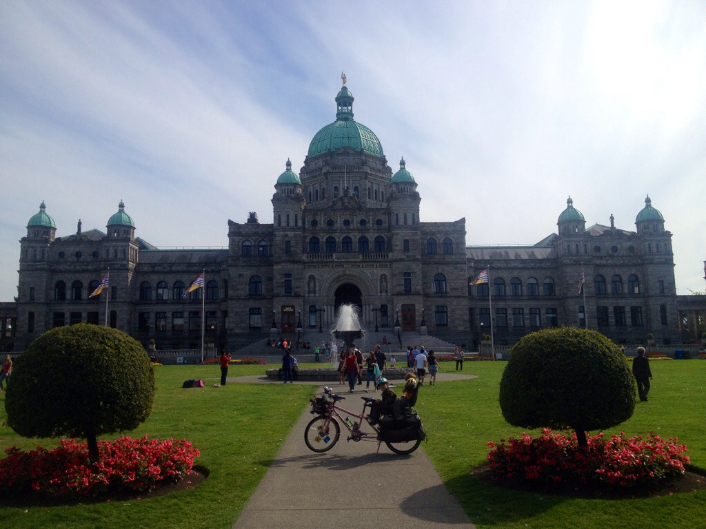 And before you know it, you’re in Victoria! This is the parliament building, very close to the Clipper terminal. As was our hotel. I couldn’t find an amazing stand-alone hotel deal online so I booked Clipper tickets and hotel through the Clipper Vacations website. The Harbour Towers Hotel & Suites worked very well and had a swimming pool, which seems to be a requirement for the kids as of late. And a parking garage with bike rack. Red Tricycle just ran an article about visiting Victoria without a car, Bon Voyage: Your Guide to a Hassle-Free Victoria, BC Getaway. No bikes utilized, but feet and buses got them around the city.