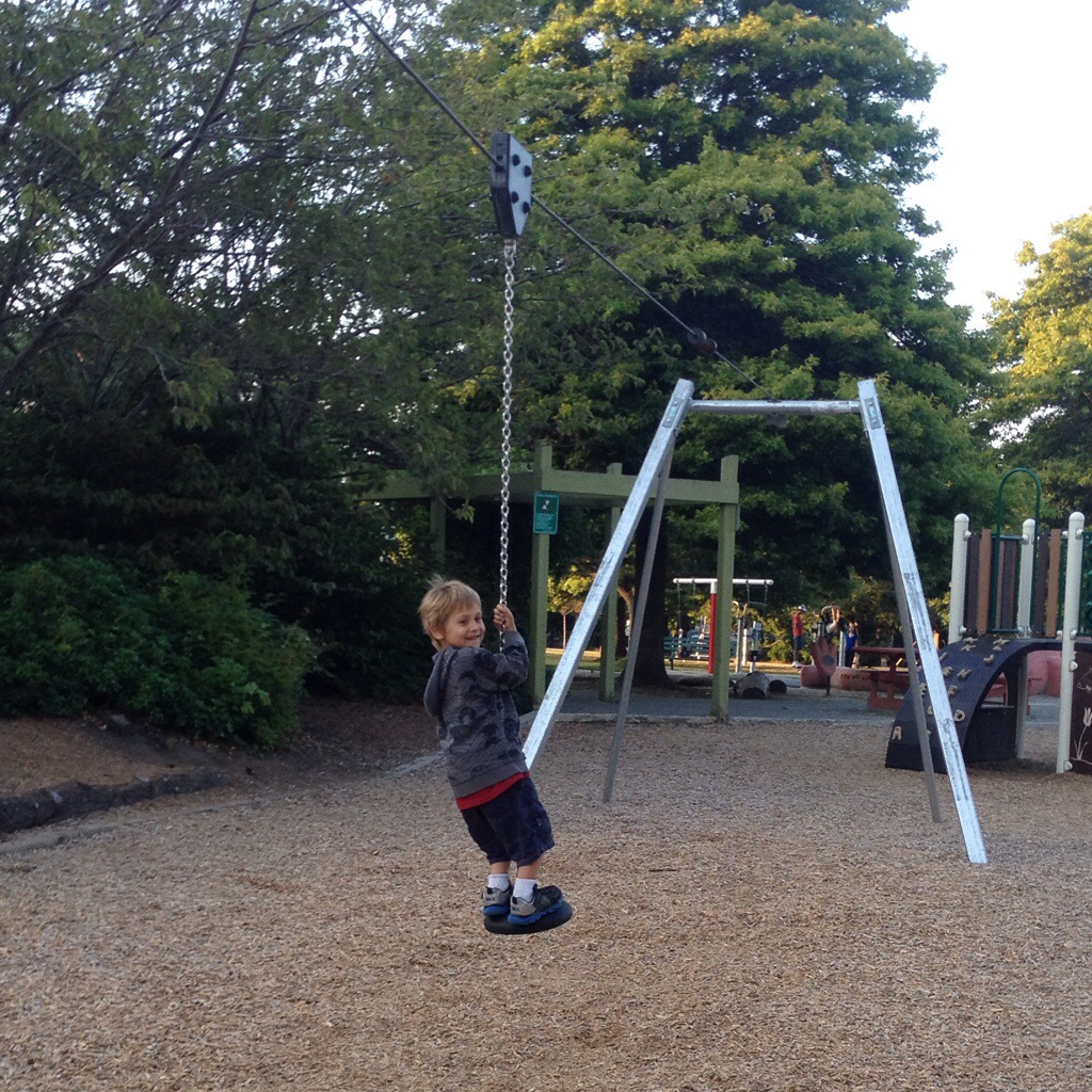The kids had a blast at the playground in Beacon Hill Park, and even more of a blast in the wooded area of Beacon Hill Park, but we returned to Cook Street Park because its zip line can’t be beat.