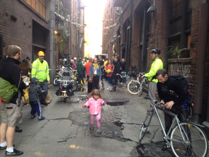 Following is a quick-ish recap of the week, with miles and bikes tallied for 30 Days of Biking at the bottom. See all the pictures in the Flickr album–warning, mostly kids (the human kind) and kids (the goat kind), but also lots of bikes.