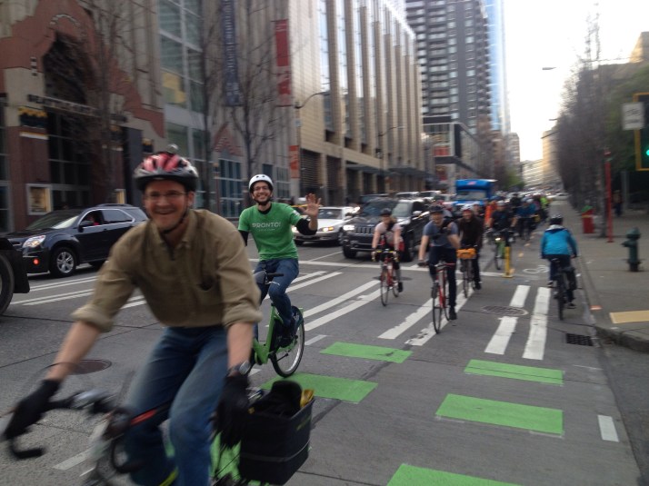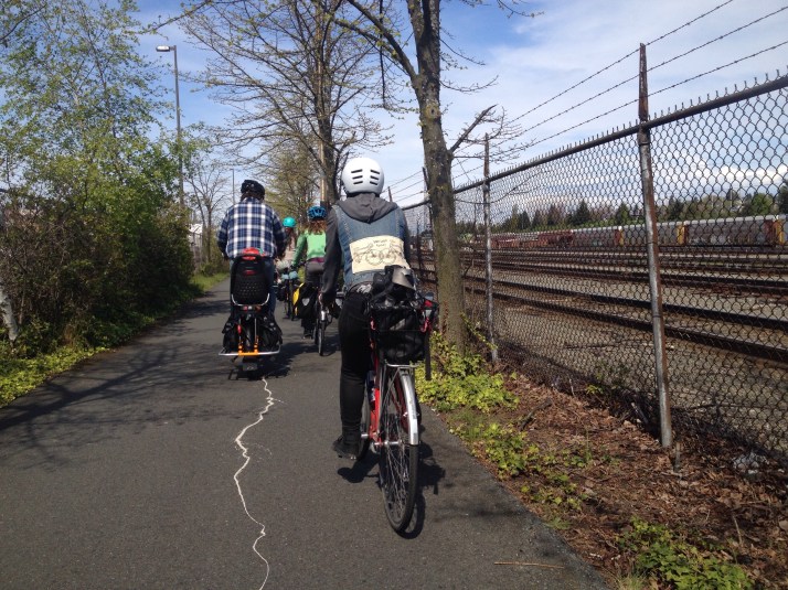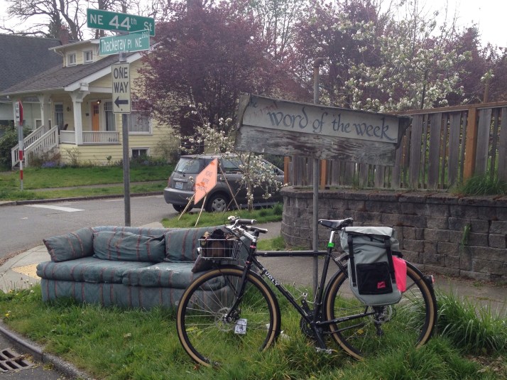 It was nice to come home on a Friday night and have what felt like a bonus weekend of Spring Break staycation. This meant we got to attend a friend’s fifth birthday party at the Olympic Sculpture Park beach and since they couldn’t carry all the party supplies on their mamachari, I got to help haul stuff, which is my favorite thing ever. We also carried what was left of the party back to our friend’s house and I was able to retrieve my road bike. I’d been lending it to a visiting Detroiter, but since I left town a day earlier than she, I arranged for her to drop it off with my friend. It seemed to all work seemlessly.