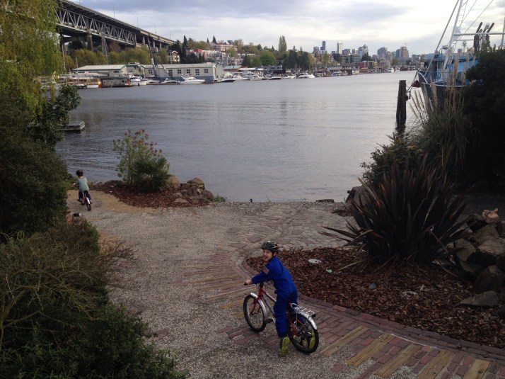 And on the last gorgeous day of Spring Break, we hit our favorite beach, Golden Gardens. The kids rode their own bikes and just when I started thinking, “Wow, maybe I don’t need to bring the cargo bike because they can ride the whole way!” my five-year old stated he couldn’t manage any more pedaling and had to hitch a ride for the last little bit.