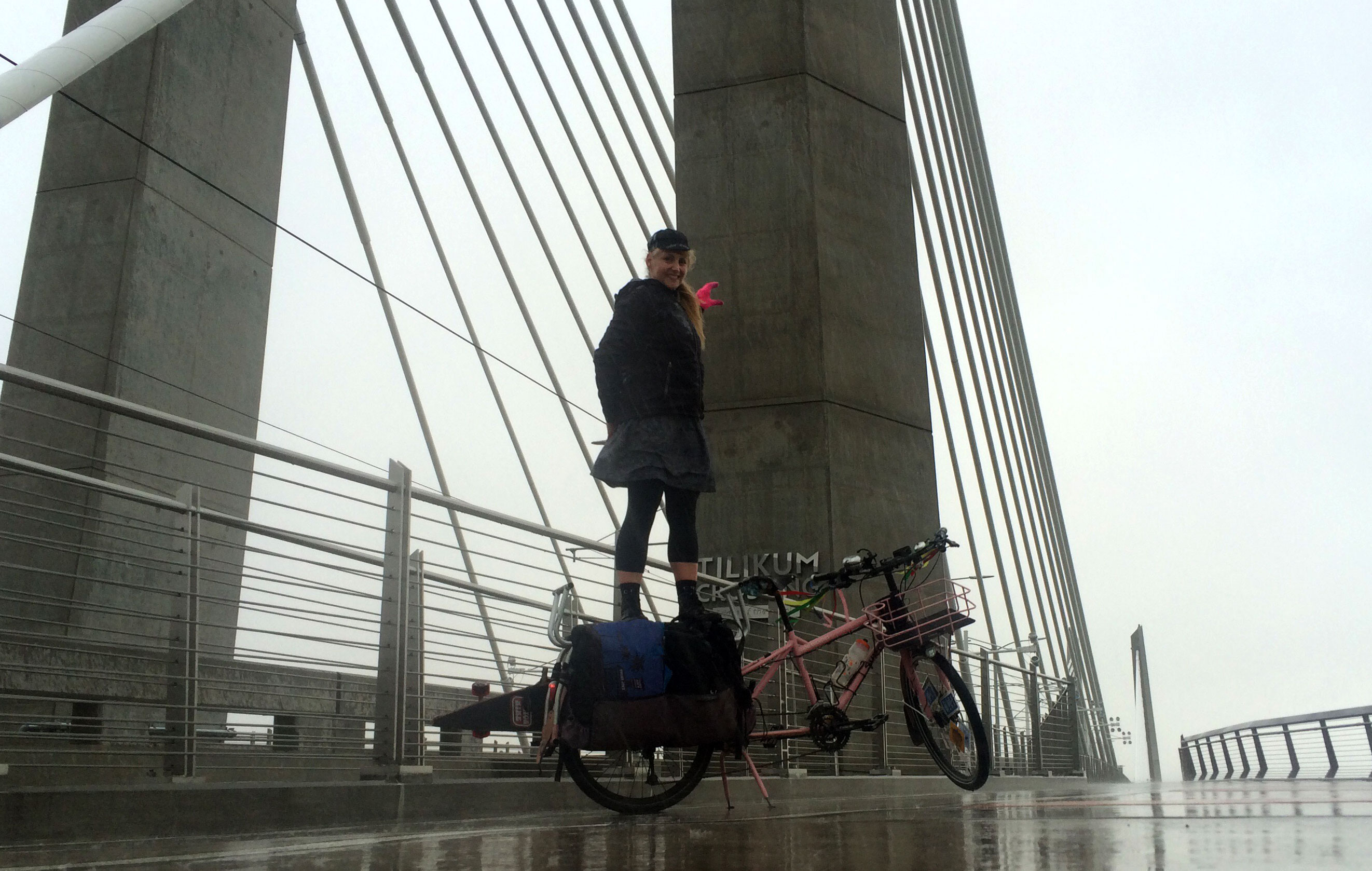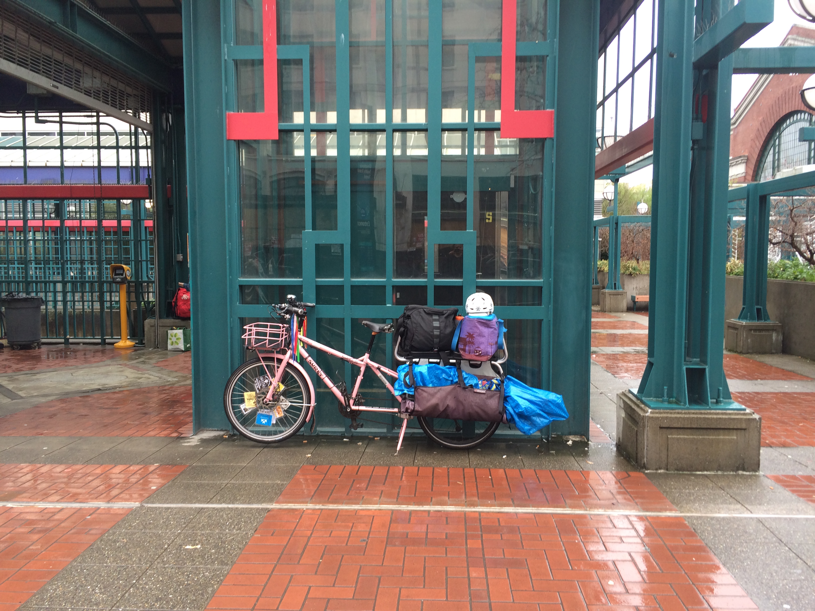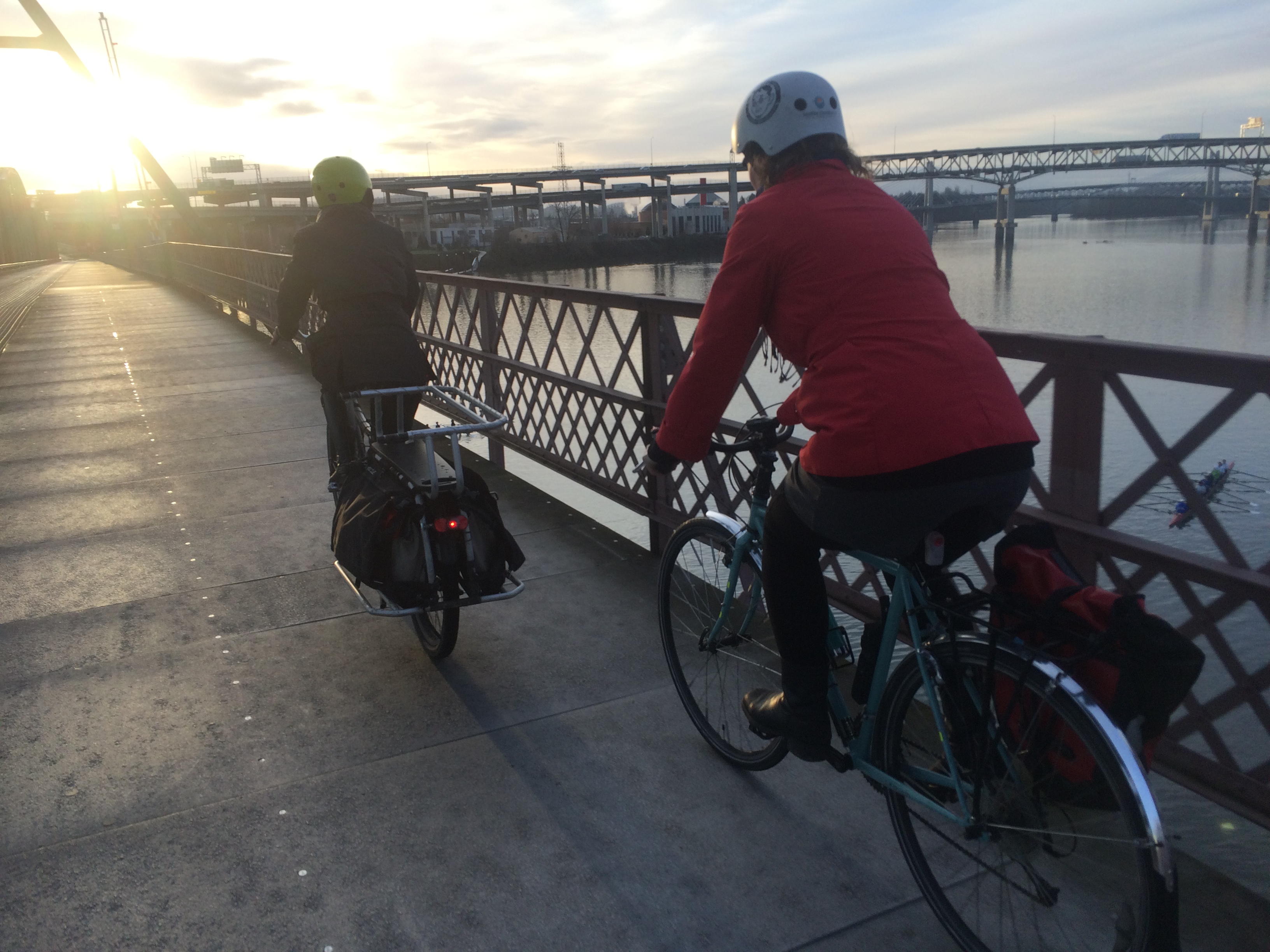 I’m standing on my Surly Big Dummy’s FlightDeck before my recent trip to Portland.