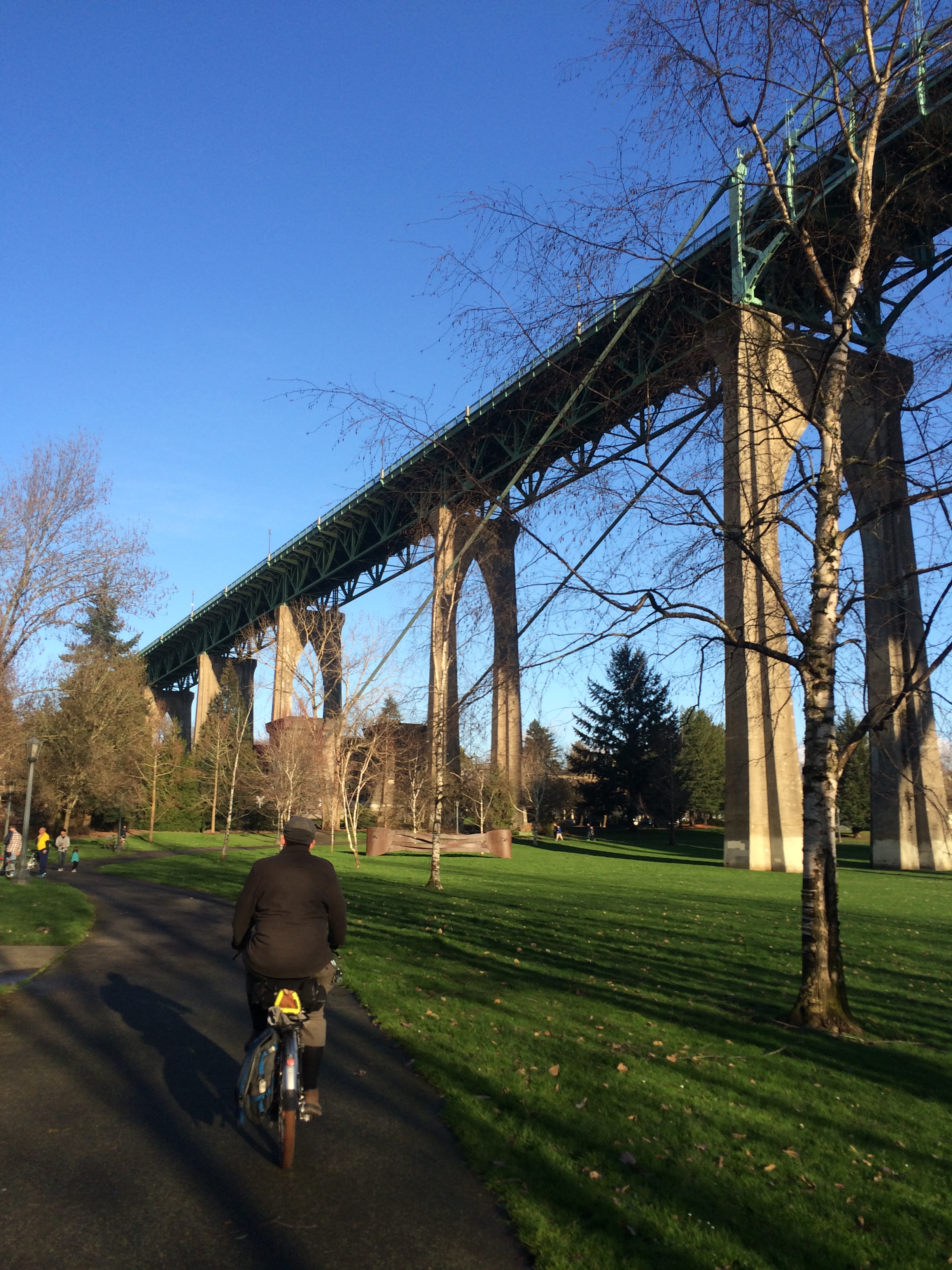 I hate to lump people into two groups, but it’s hard not to notice striking differences in appearance at Chilly Hilly. The majority of people are in cycling-specific clothing and I feel for them when I see them in the ferry line hobbling around in what must be very uncomfortable shoes for walking. I don’t know much about the inner workings of Cascade Bicycle Club, but I am a volunteer ride leader and benefit from many programs the club offers. I have always assumed the “serious cyclists” who pay for most of the entries in the big rides like Chilly Hilly, STP, and RSVP generate the revenue that both puts on those rides and funds the things I think are the most important, like the Major Taylor Project and the educational programming that directly impacts me. So I’m certainly not going to be mean to those with deep Lycra pockets…though mostly because I’m not going to be mean to anyone!