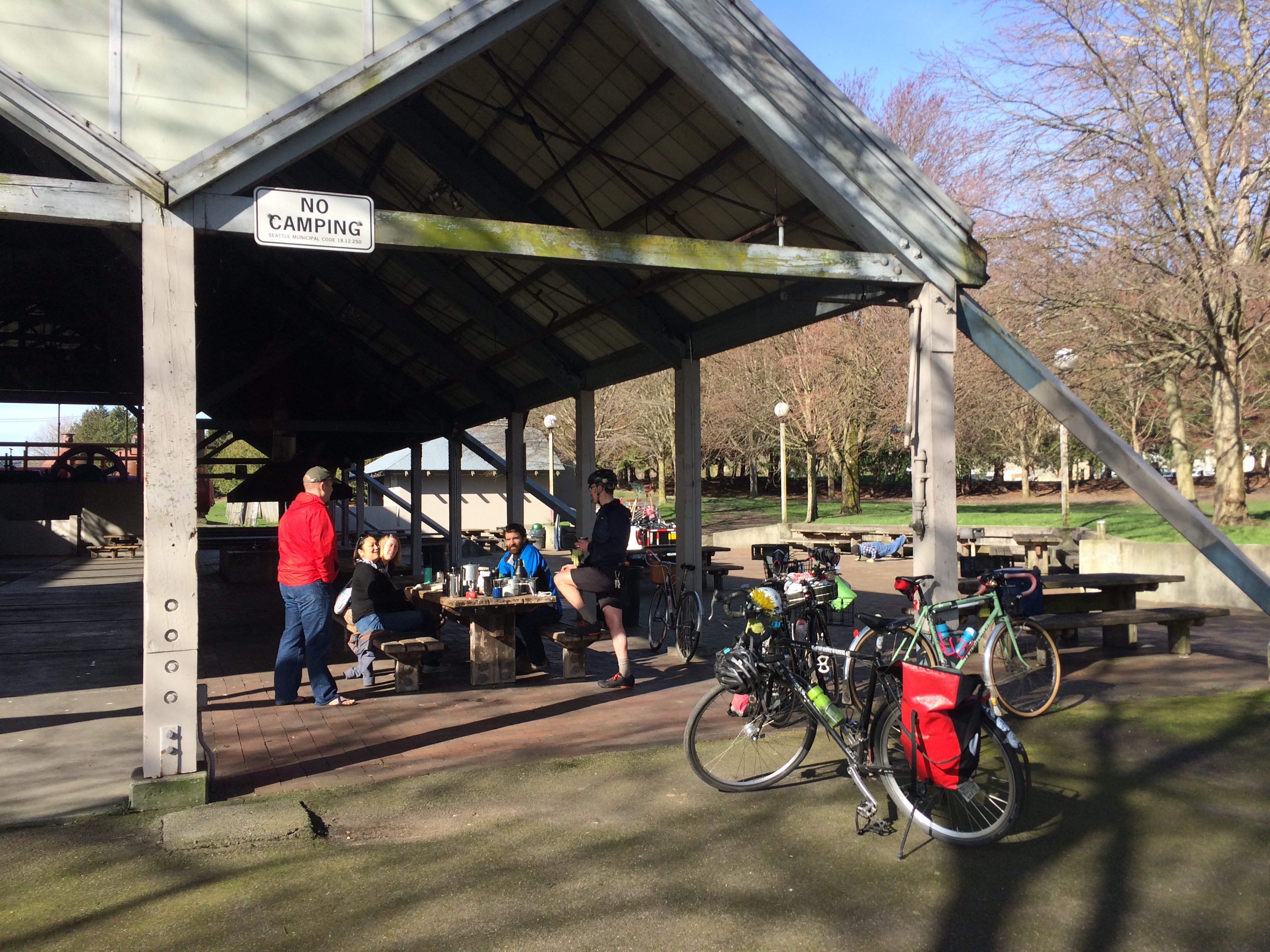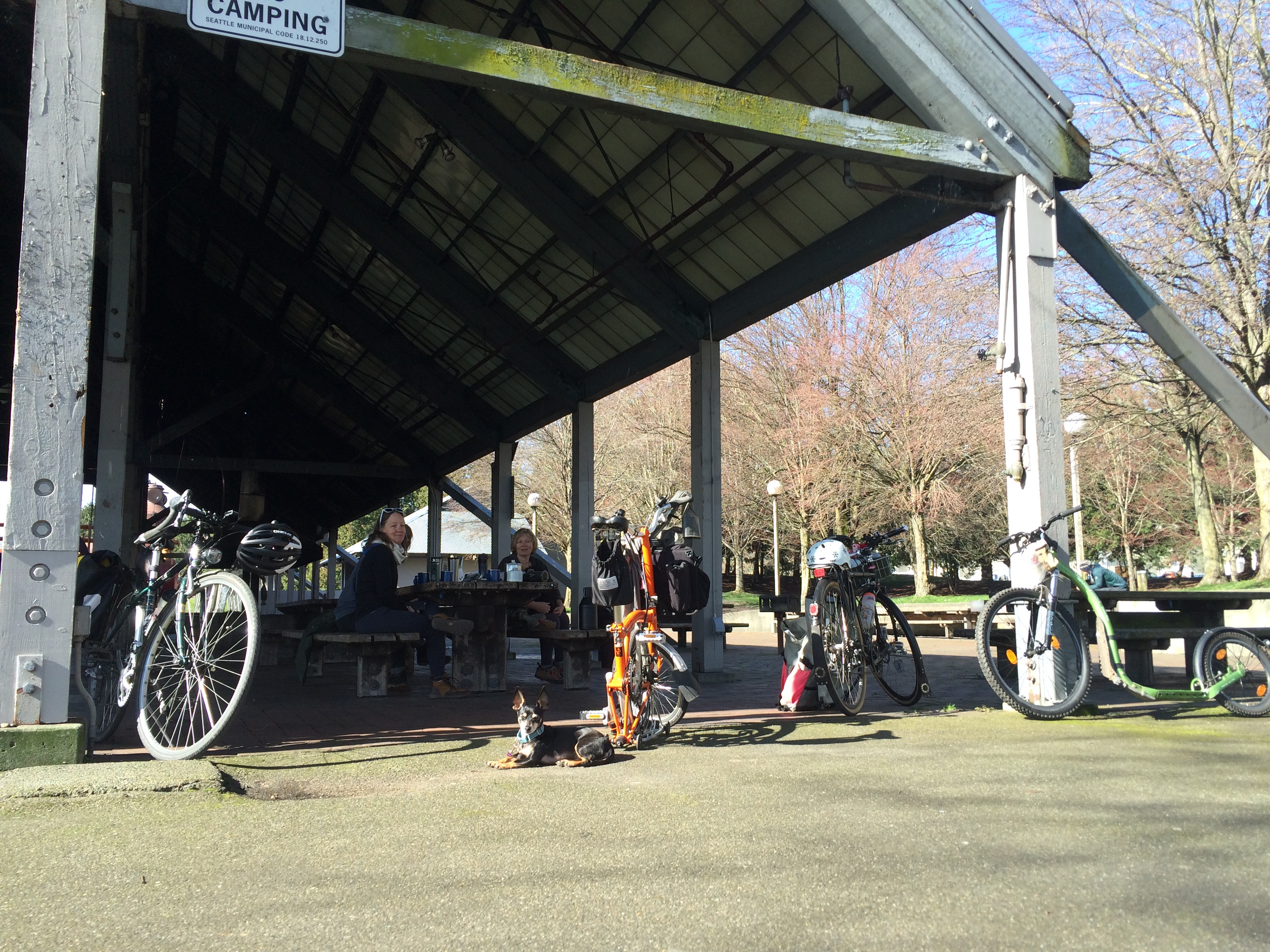Chilly Hilly isn’t a family-specific event, but it’s certainly family friendly. I rode it with one kid four years ago and this year I saw a few kids in trailers, on tandems, and on trailer bikes–and one superstar who pedaled his own 16-inch bike and retired to a trailer behind his dad’s bike when he couldn’t push on. For me, I’ll fully admit that since having discovered the relatively flat highway route to get to bike camping at Fay Bainbridge, I might never ride the hilly route with kids again. Maybe they’ll want to ride Chilly Hilly in the future and we’ll do it, but we are all primarily transportation cyclists and do things in two-mile increments, not 33-mile increments, so Chilly Hilly would be a very big deal for us.
