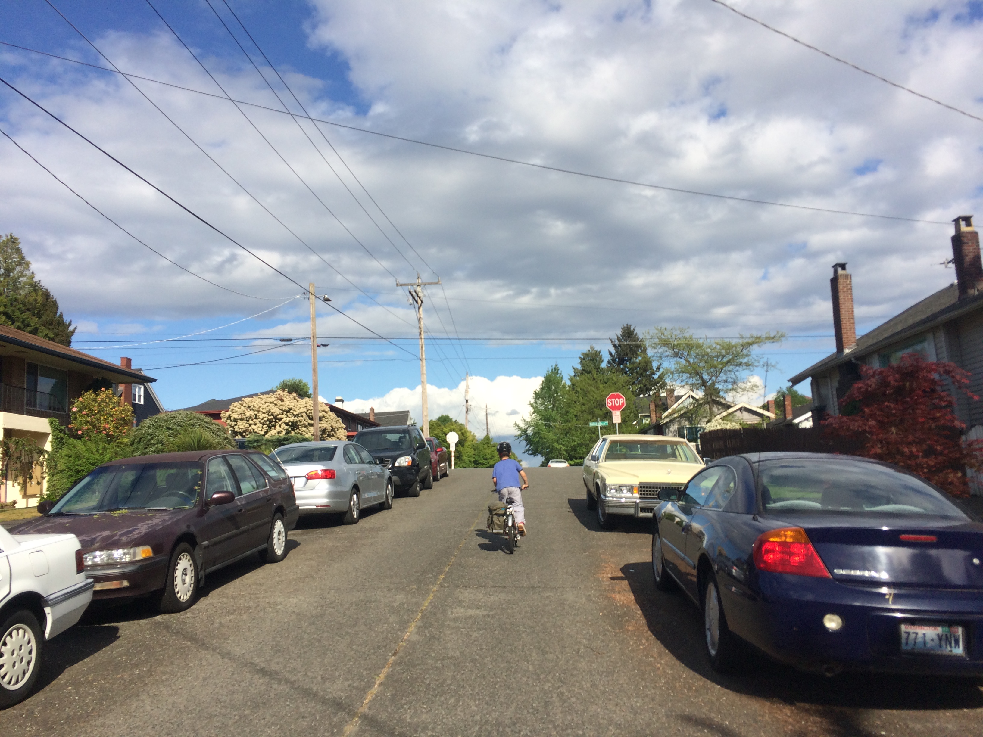 I sat on the hill with my little dog shivering in my lap and watched as two more lanterns journeyed up and over the Space Needle. I had a lot of company on the hill. I was kind of surprised, but I guess 11pm on a Saturday night isn’t all that late for most people. I was surrounded by conversations: two people arguing about work stuff, a small group practicing some sort of dance behind me, three college-aged kids with a camera speaking in Japanese, and more. It didn’t take long for me to realize I was the only buddy-less person in the park (sorry, Pixie, you don’t really count). I stayed a while longer, enjoying the view and surrounding chatter, but eventually bundled Pixie back into the bike basket and headed down the hill, thoughts of aloneness filling my head. I spend a lot of time alone these days. Maybe not a lot of time, but every other weekend without the kids still feels like a lot. It’s great having the luxury to easily travel to Portland and other places kid-free, but at the same time, all that travel is in large part about keeping busy. I’m just not very good at being alone and get stir crazy. If I sound pitiful, please know it’s not that bad! I had to check just how long ago I shared I’d been called profoundly sad–this past December, on the Big Dummy’s birthday. Not even five months later I no longer feel that way. Yay me! I wouldn’t say I’m back to normal yet, but I’m a helluvalot more used to my new normal. And still: biking makes everything so so so so so much better.