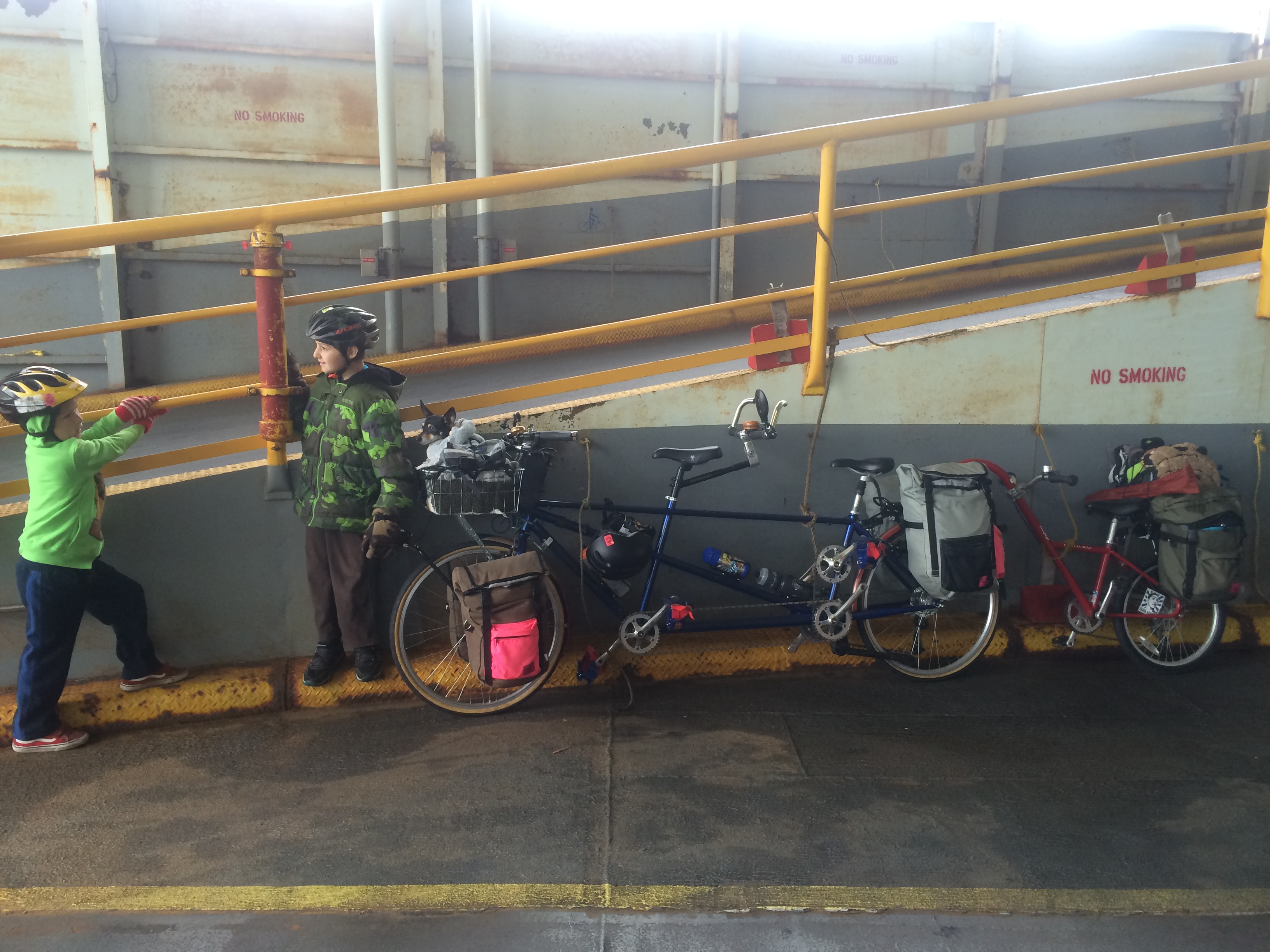 Same ferry terminal as if going to Bainbridge which means even though the Bremerton ferry tends to be less crowded, the ticket booths are filled with people driving onto the Bainbridge ferry. The booth adjacent to the bike lane was closed so rather than wait in a long line of cars, I swiped my adult Orca card and one of our youth Orca cards to match what we were charged last trip.