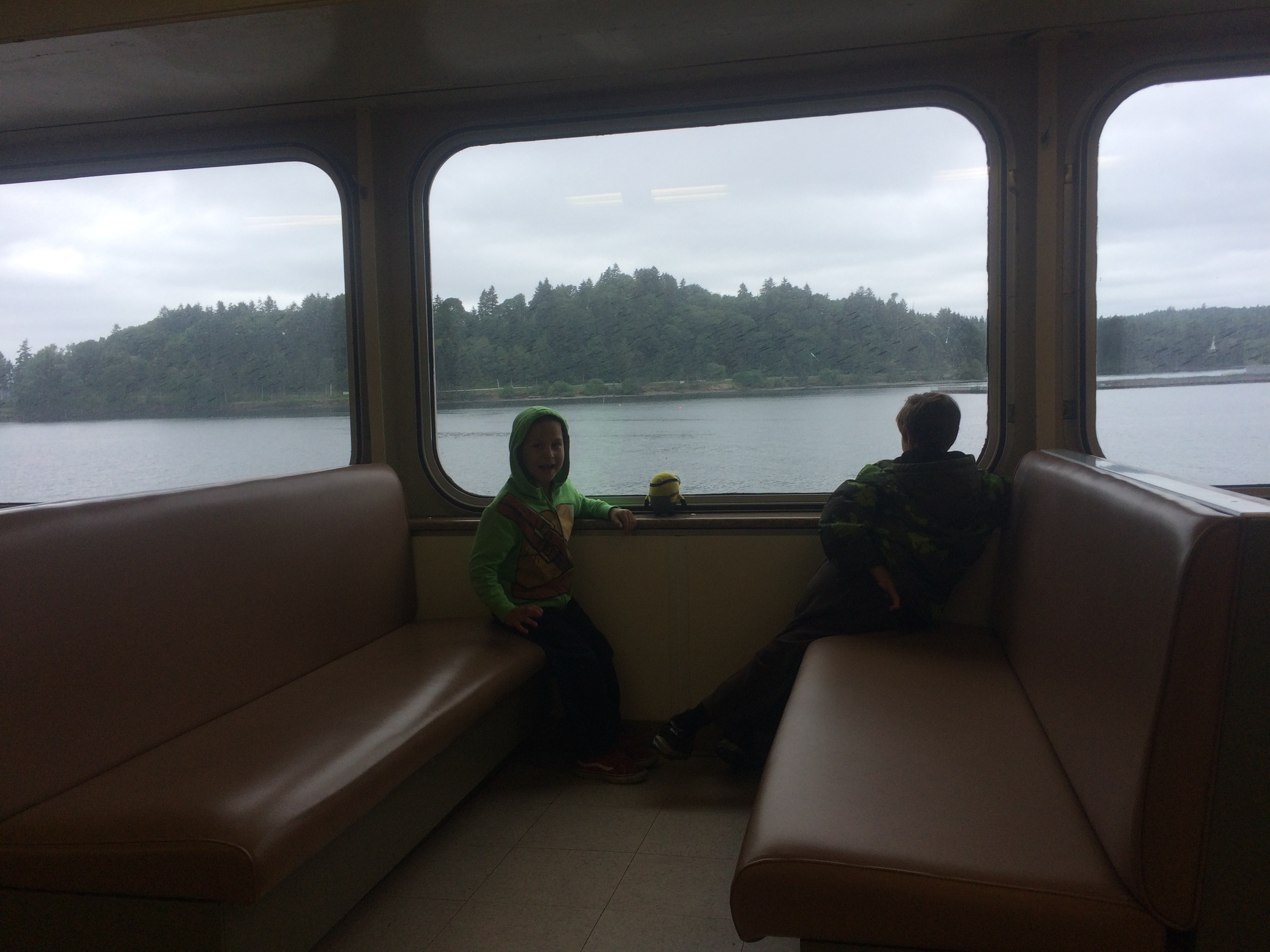 The ferry ride to Bremerton is 60 minutes (compared to Bainbridge’s 35) so as a woman in Bremerton said, “You better get your money’s worth!” And there’s also plenty of time to wait in line at the cafe (not that the line is as long on this less-packed ferry) for kid snacks.