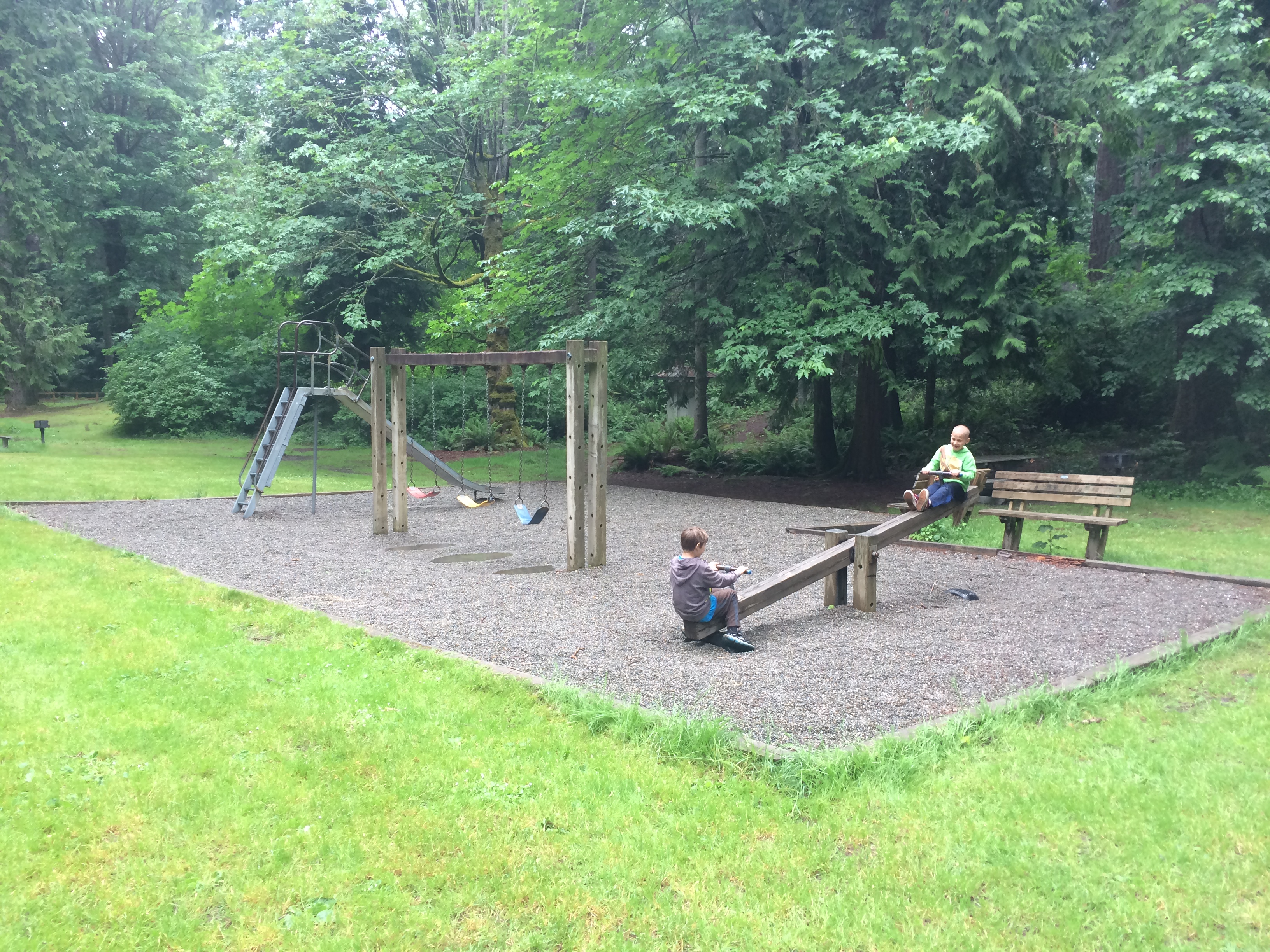 And the playground is small, but fun. It’s rare to find a seesaw in Washington. Of course there was a communication mishap during a seesaw dismounting resulting in a bruised butt and some yowling.