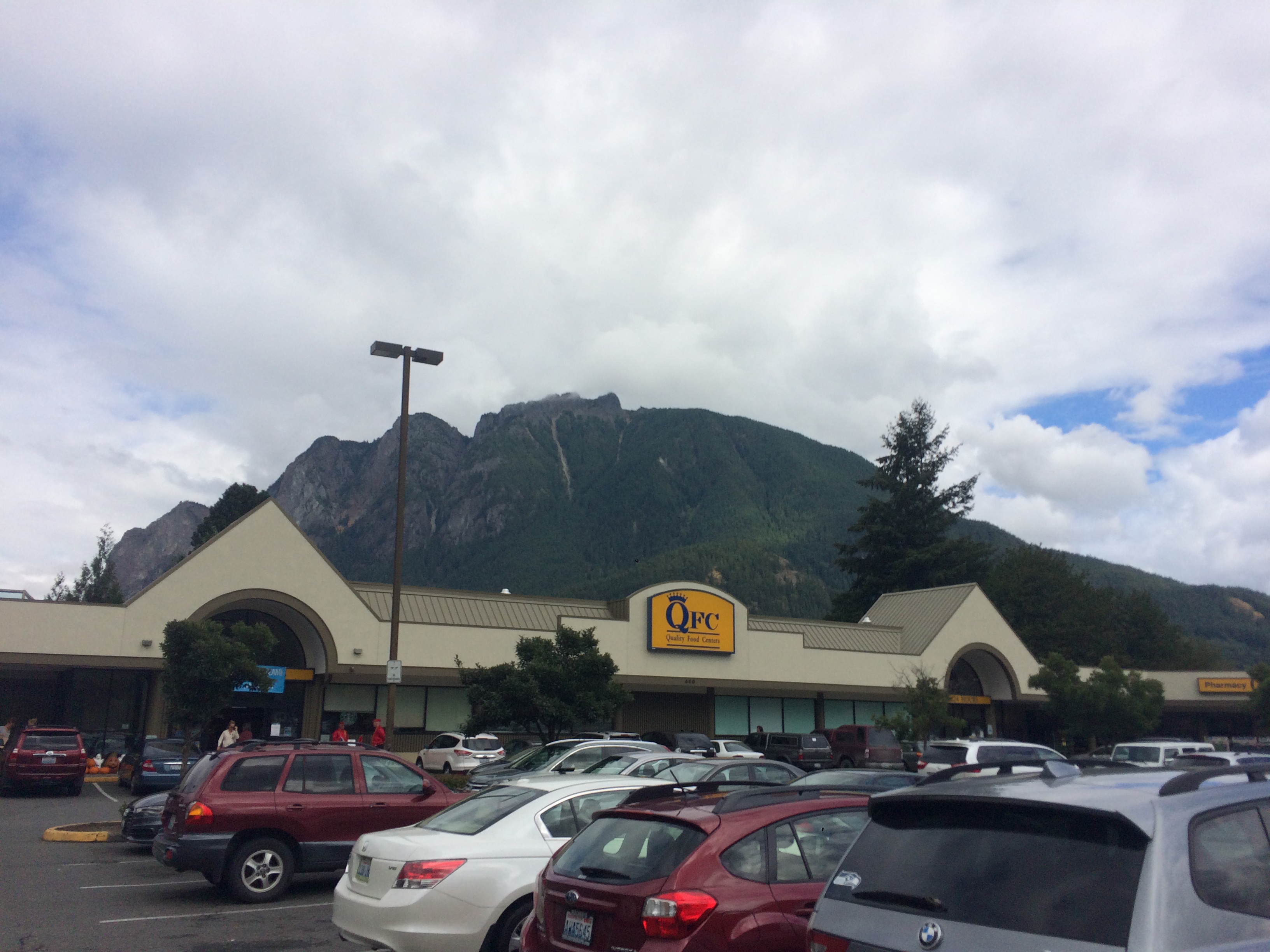 The rest of the way to North Bend was the same as I took before, but we stopped in town for groceries, at what must be the most beautiful QFC in the world, tucked in the shadow of Mount Si.