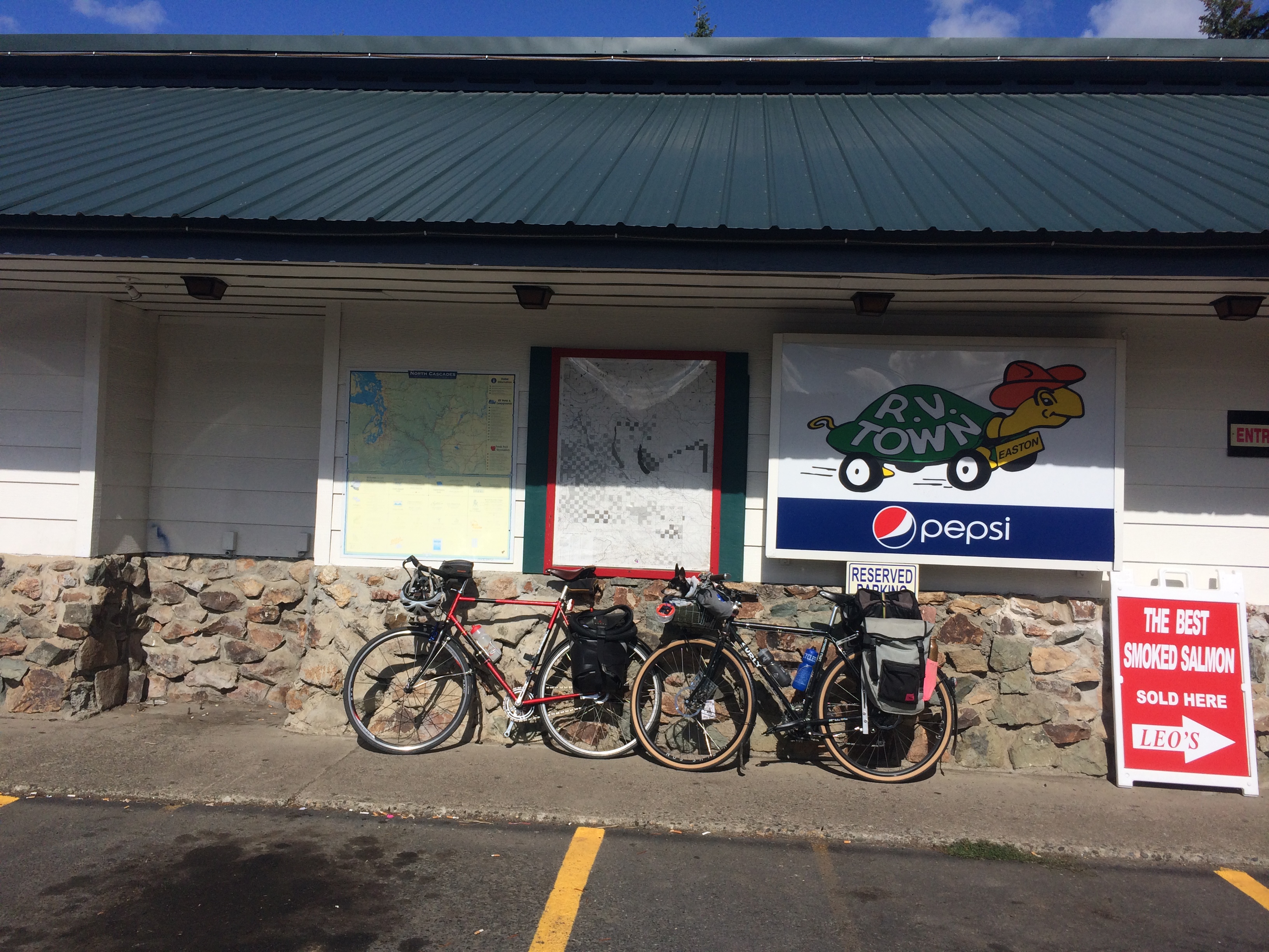Had we made it to Cle Elum we would have bought dinner supplies at a big grocery store, but in Easton we had only the gas station RV Lounge. That worked well enough, plus we got some of Leo’s THE BEST SMOKED SALMON for breakfast.